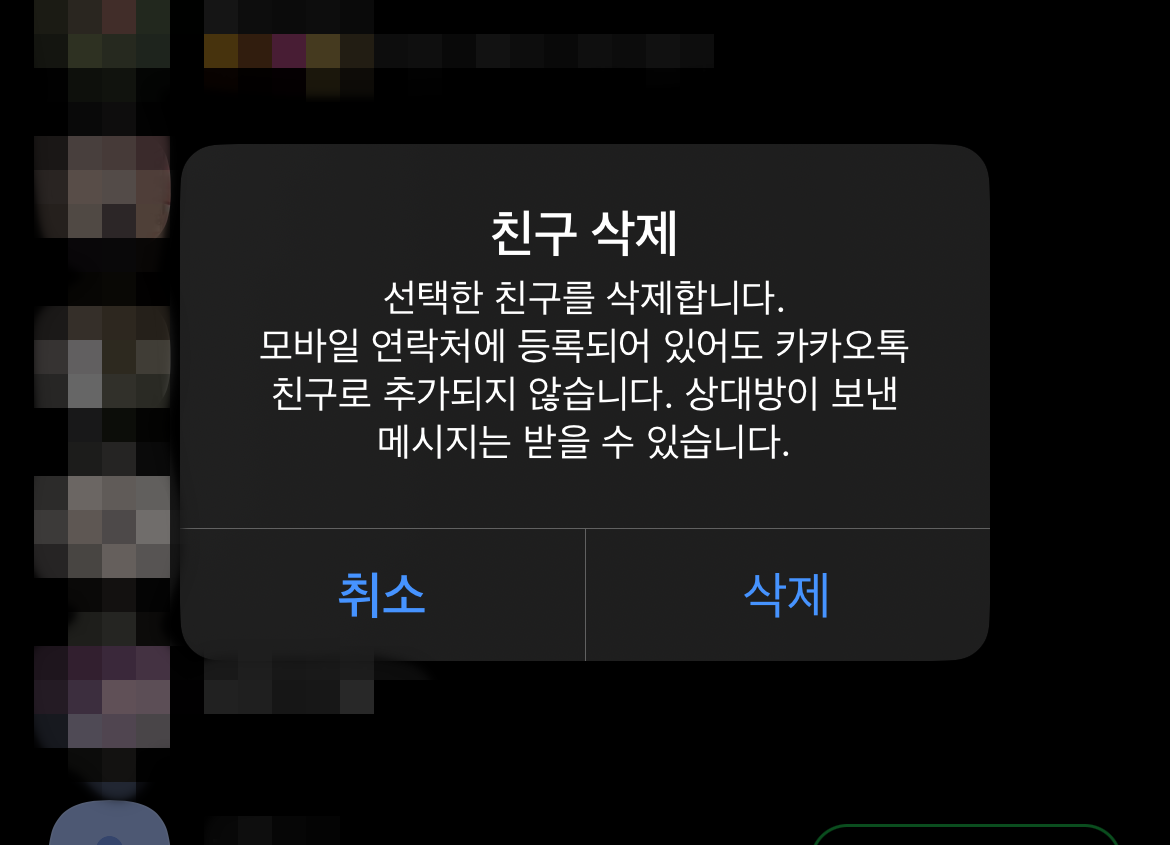 위와 같은 방법을 통하여 카톡 친구 삭제를 하거나 친구 프로필을 슬라이드해서 '삭제'를 했을 경우, 어떠한 목록에서도 친구를 찾을 수 없다. 하지만 그 상대방에게 메세지가 온다면 메시지를 확인할 수 있고 답장을 할 수 있다. 이렇게 카톡 친구 삭제를 한 경우에 복구를 하는 방법도 알아보도록 하자. 카톡 친구 삭제 후 복구 방법을 알아보기 전에 카톡 친구 차단에 대하여도 알아보자.