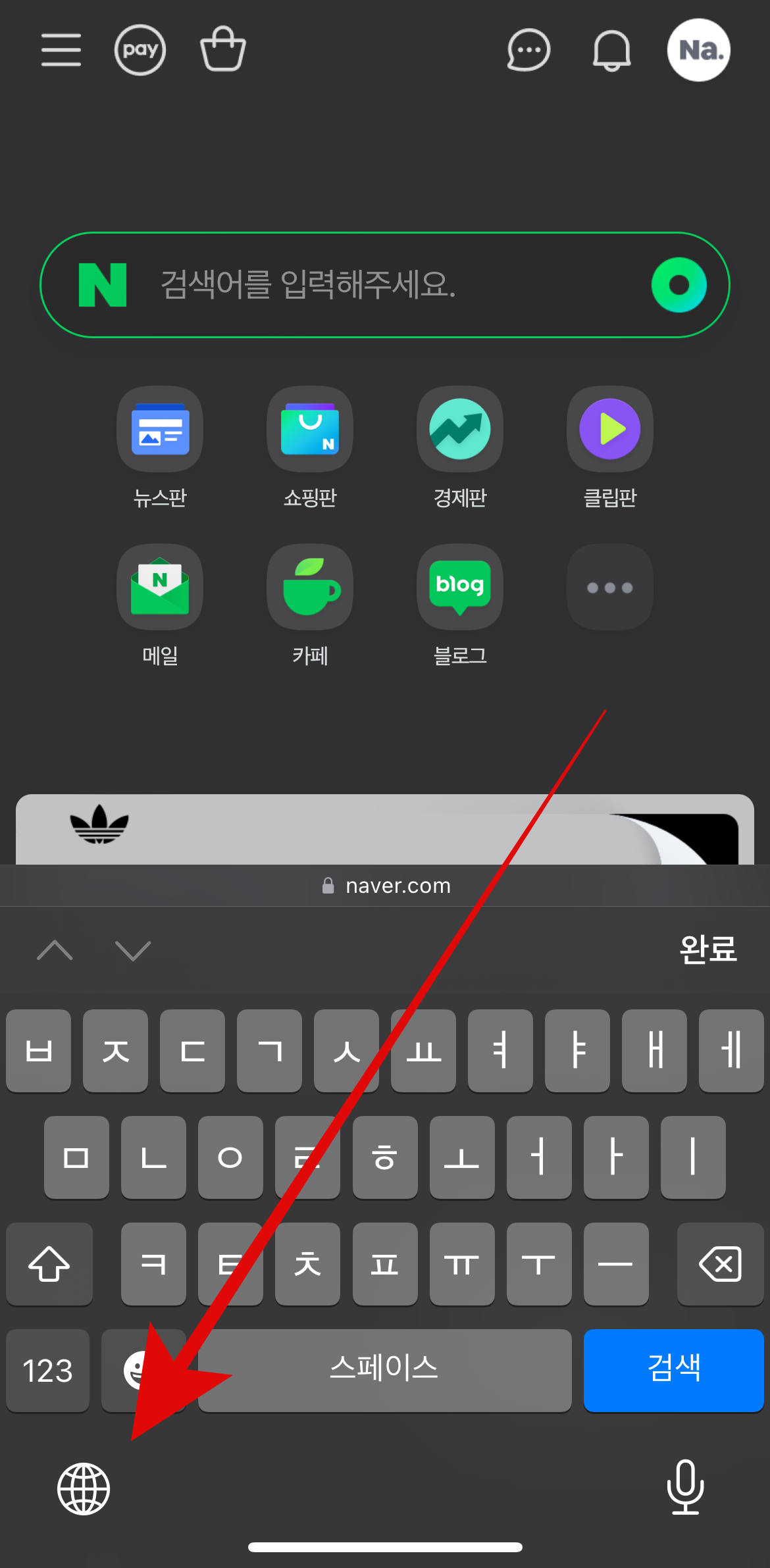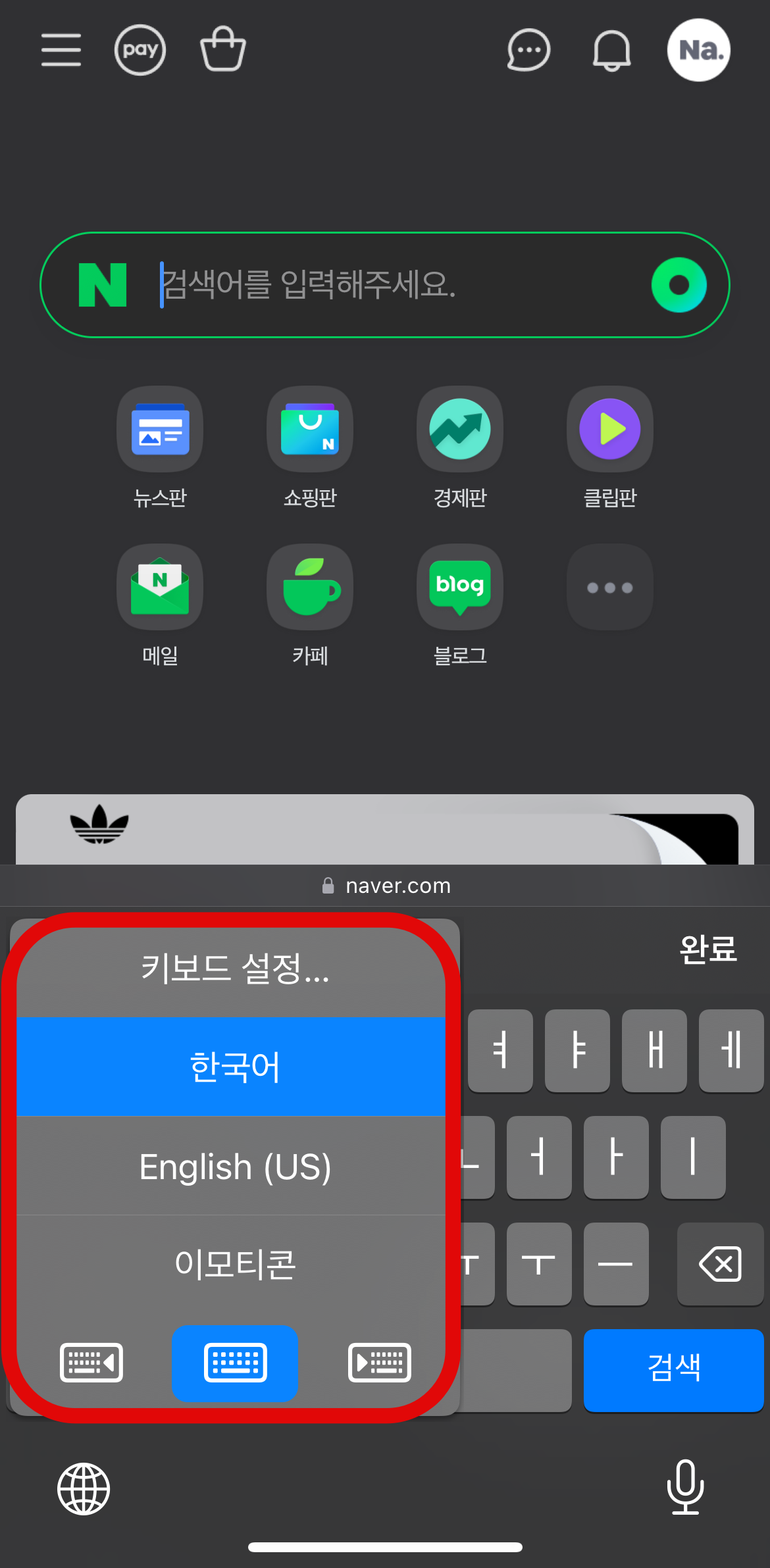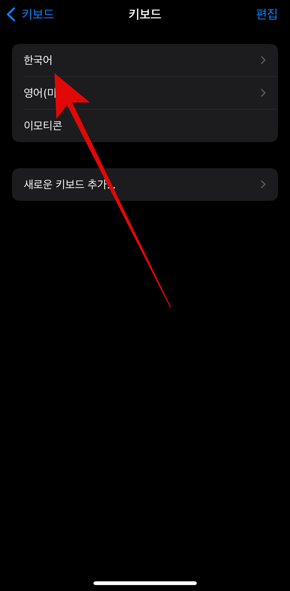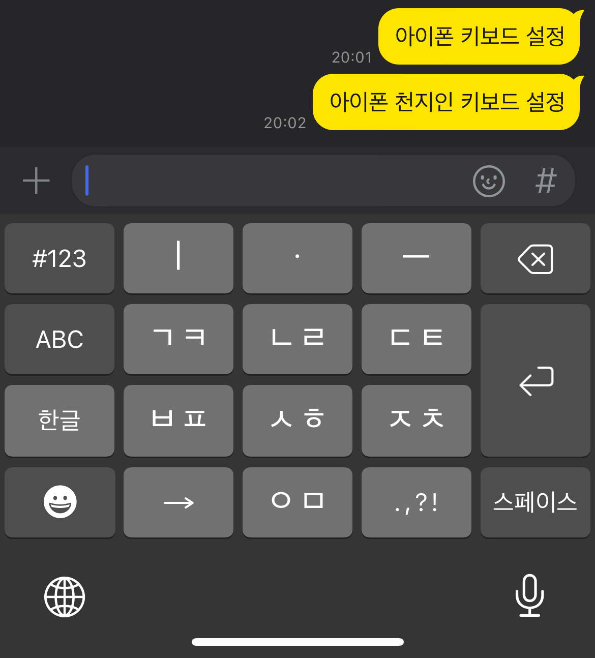 위와 같은 방법으로 설정-일반-키보드를 통하여 아이폰 천지인 키보드 설정을 해도 되지만 더욱 빠르게 하는 방법이 있다. 메세지를 입력할 때 잘 보면 왼쪽 밑에 지구본모양이 있을 것이다. 한글과 영어, 이모티콘으로 바꿔주는 기능만 있는 줄 알았던 지구본 모양을 꾹 눌러보자. 그러면 한국어와 영어, 이모티콘과 함께 가장 위에 키보드설정이라는 것이 보일 것이다. 여기서 키보드 설정을 눌러주면 아까 설정-일반-키보드로 들어간 것과 같은 화면을 볼 수 있다. 더욱 빠르게 아이폰 키보드 설정이 가능하다.
