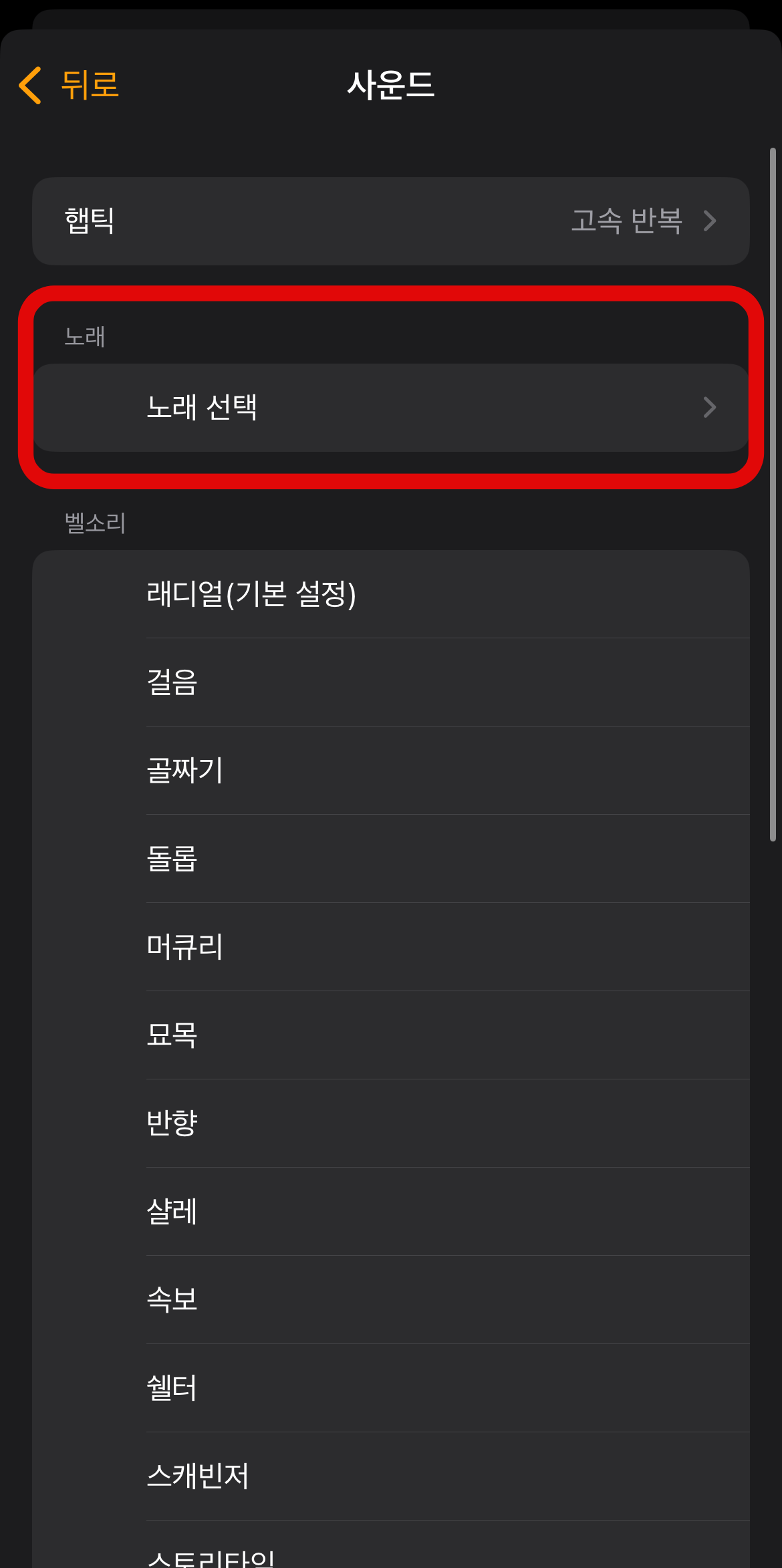 먼저, 자신이 원하는 음악이나 원하는 알람소리를 아이폰에 다운로드한다. 그리고 앞서 설명한 아이폰 알람소리 바꾸기 방법을 통하여 알람소리 사운드까지 들어간다. 여기서 위에 있는 노래 선택에 들어가 준다. 다운로드한 음악파일이 있다면 여기에 보일 것이고 그 음악파일을 선택해 주면 내가 원하는 음악으로 아이폰 알람소리 바꾸기가 완료된다.
