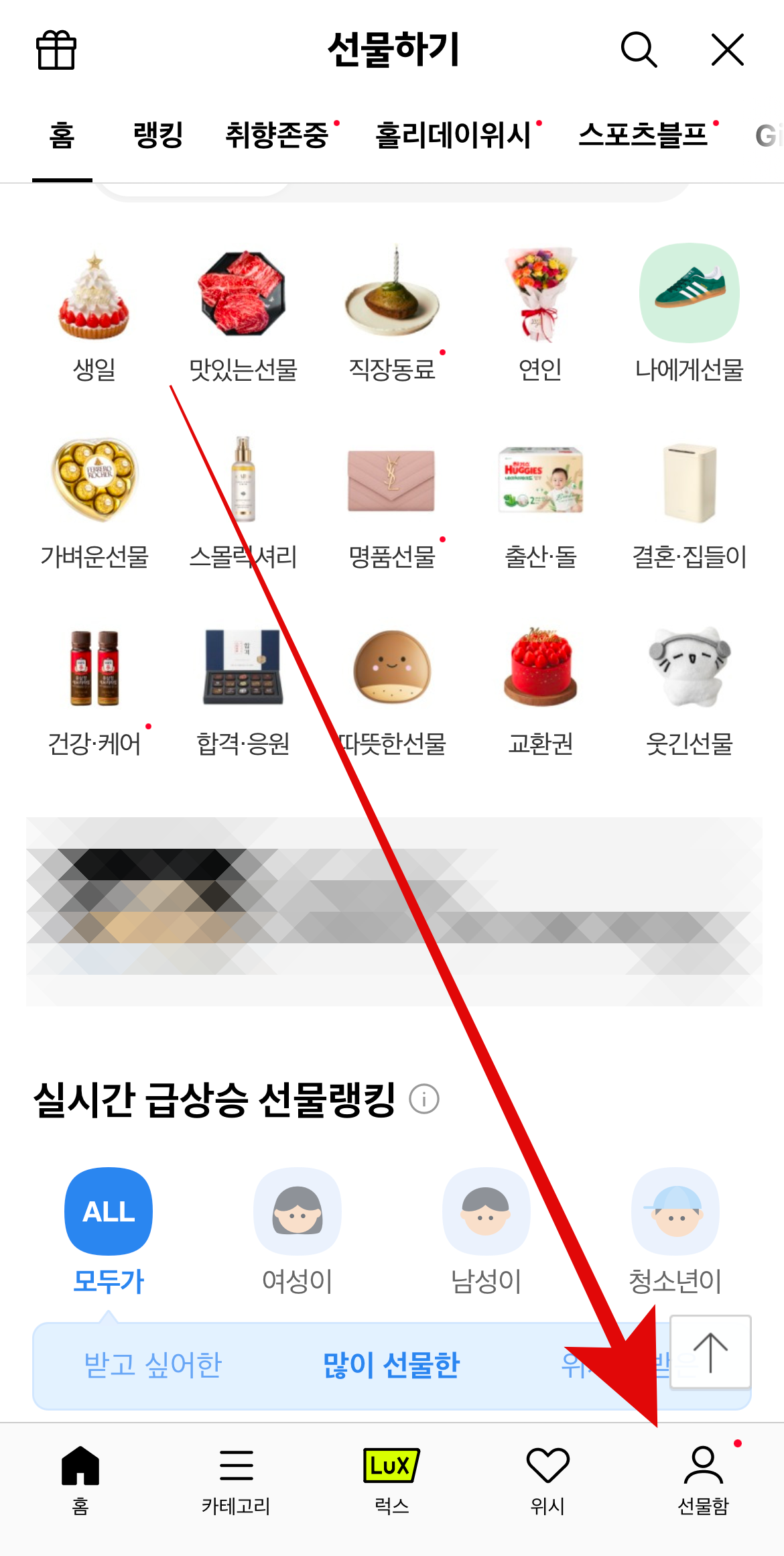 카톡 선물하기 친구 위시리스트 보는 법은 매우 간단하다. 먼저 캘린더에 들어가듯이 카카오톡에서 더보기를 누른다. 그리고 여기서 선물하기로 들어가자. 그리고 오른쪽 아래에 보이는 선물함으로 들어간다. 선물함에 들어오게 되면 내가 받았는데 아직 사용하지 않은 선물을 볼 수 있고 받은 선물내역을 볼 수 있다. 여기서 중간쯤에 있는 친구의 위시리스트를 눌러보자.