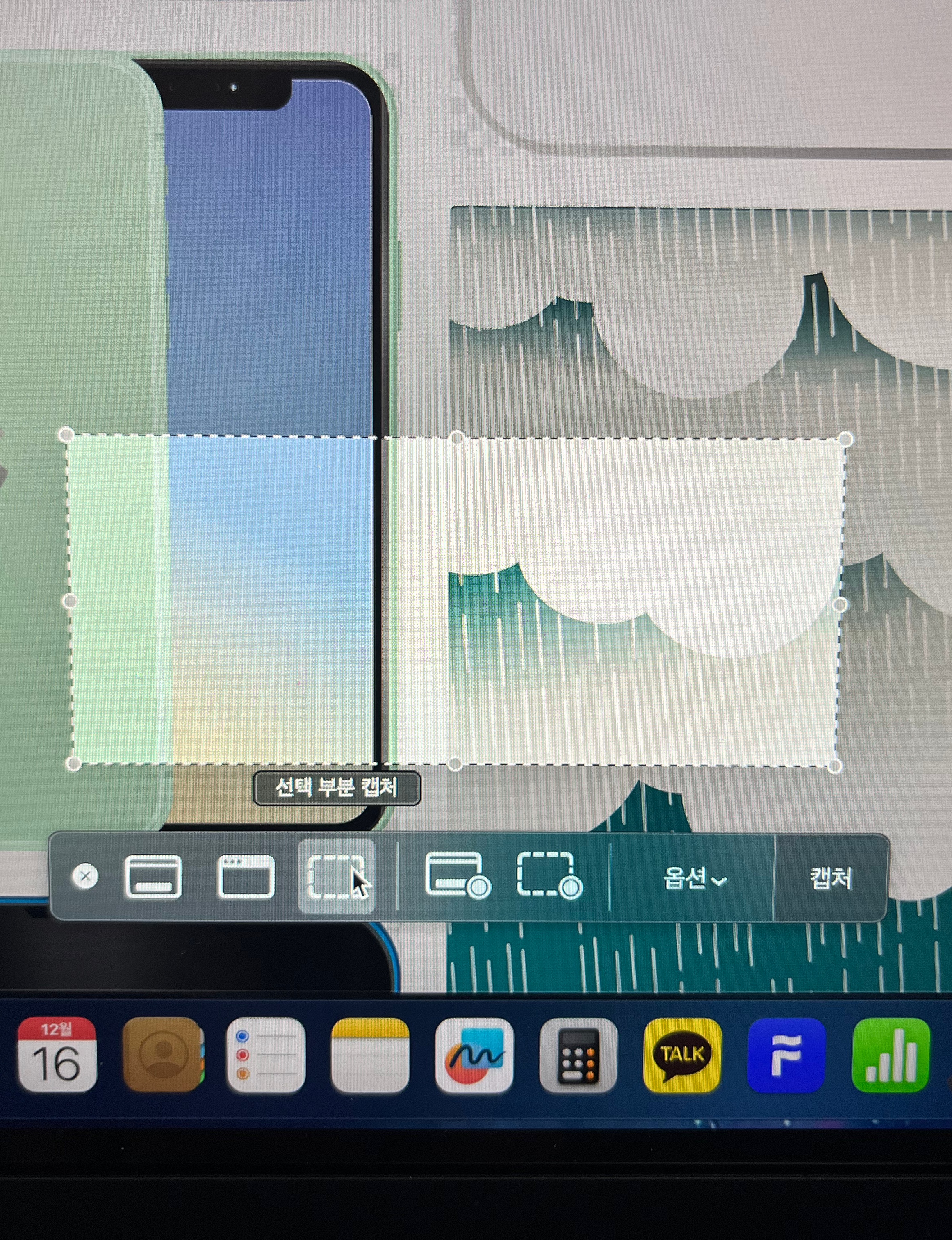 맥북 캡쳐 단축키 마지막으로 쉬프트+커맨드+5번 키를 누르면 내가 설정해 놓은 캡쳐를 할 수 있다. 그리고 여기서 원하는 캡쳐로 바꿀 수도 있다. 전체 화면 캡쳐, 선택한 윈도우 캡쳐, 선택 부분 캡쳐로 설정이 가능하며 기본적으로는 선택 부분 캡쳐로 되어 있을 것이다. 드래그하는 방식이 아니라 범위를 설정하여 캡쳐를 할 수 있다.