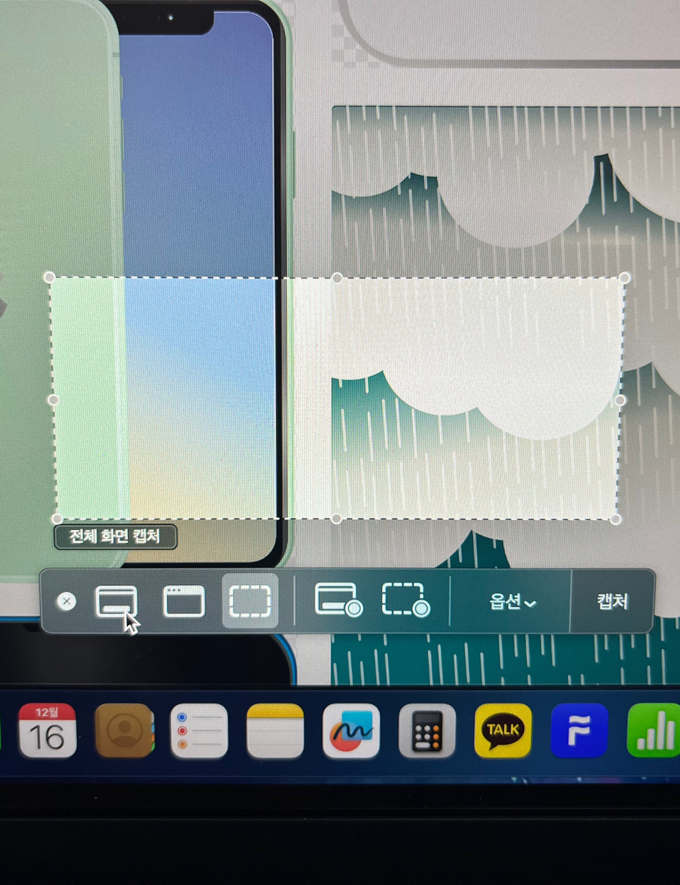 맥북 캡쳐 단축키 마지막으로 쉬프트+커맨드+5번 키를 누르면 내가 설정해 놓은 캡쳐를 할 수 있다. 그리고 여기서 원하는 캡쳐로 바꿀 수도 있다. 전체 화면 캡쳐, 선택한 윈도우 캡쳐, 선택 부분 캡쳐로 설정이 가능하며 기본적으로는 선택 부분 캡쳐로 되어 있을 것이다. 드래그하는 방식이 아니라 범위를 설정하여 캡쳐를 할 수 있다.