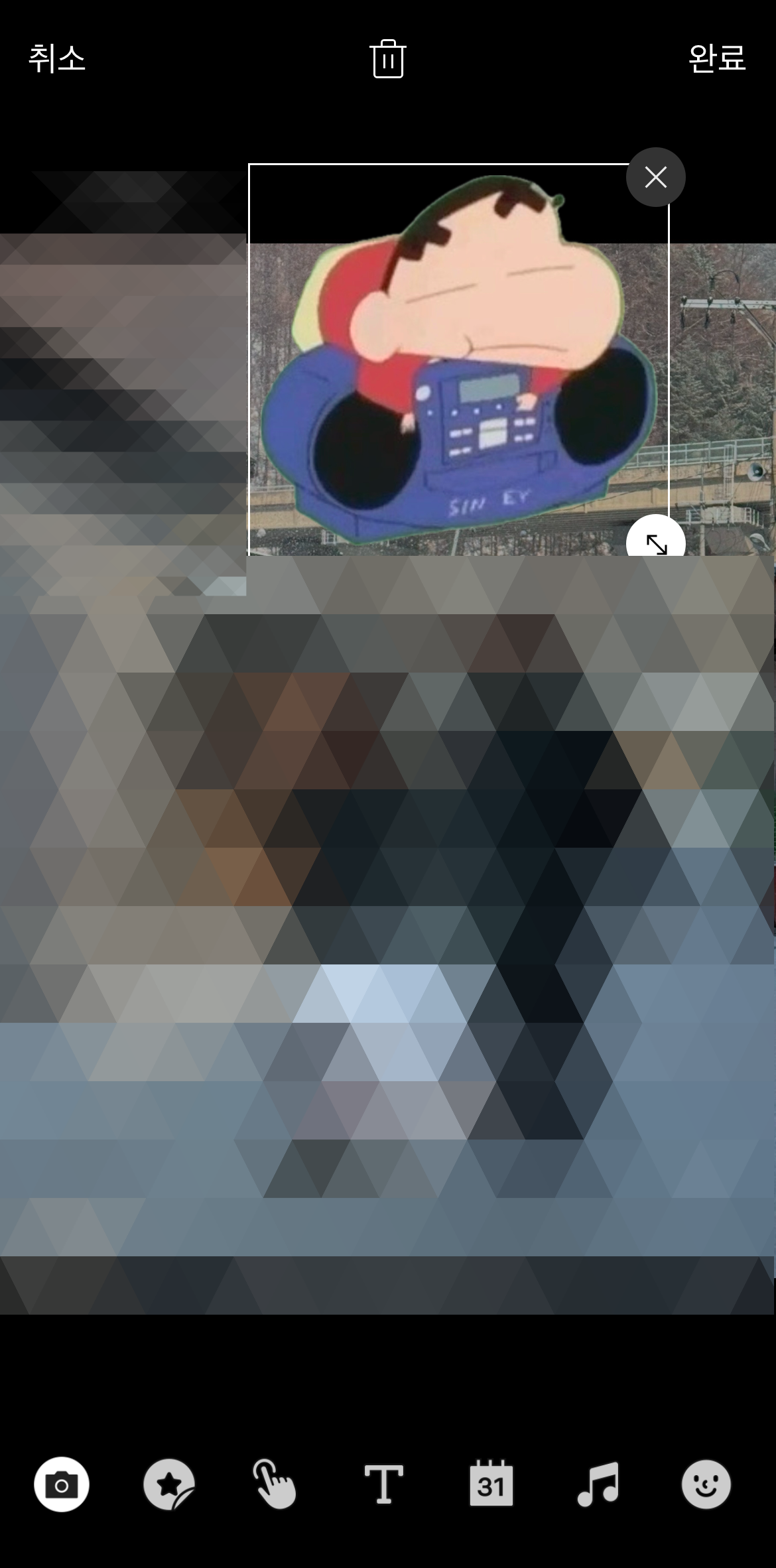 아이폰 누끼따기를 해놓고 카카오톡에 들어가서 프로필 편집으로 들어간다. 여기서 사진이 아닌 텍스트를 눌러보자. 그러면 여기에 텍스트를 추가할 수 있는데 아까 클립보드에 저장해 둔 누끼를 붙여 넣기 하면 스티커처럼 활용이 가능하여 카카오톡 배경화면을 내 마음대로 꾸밀 수 있다. 하나만 가능한 게 아니라 또 텍스트 추가하기를 통하여 여러 개의 누끼를 넣을 수 있다.