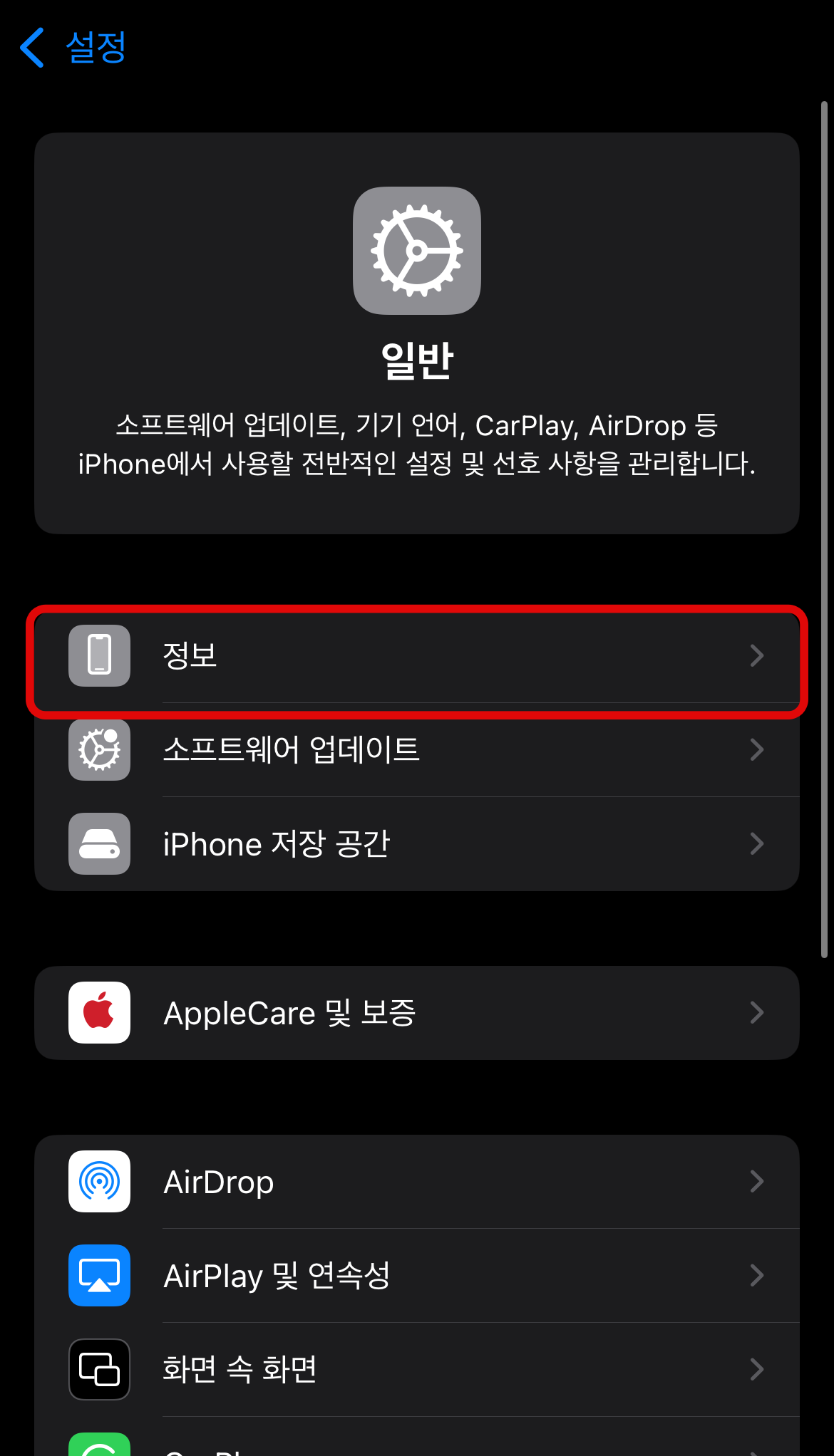 애플 아이폰 일련번호 조회하는 방법은 매우 간단하다. 설정에 들어가서 일반으로 들어간다 그리고 가장 위에 있는 정보에 들어가 보자. 그러면 나의 휴대폰에 대한 정보가 쭉 나열되는데 여기서 바로 일련번호를 확인할 수 있을 것이다. 다음으로 알아볼 것이 아이폰 일련번호랑 비슷한데 약간 다른 imei 조회하는 방법이다.