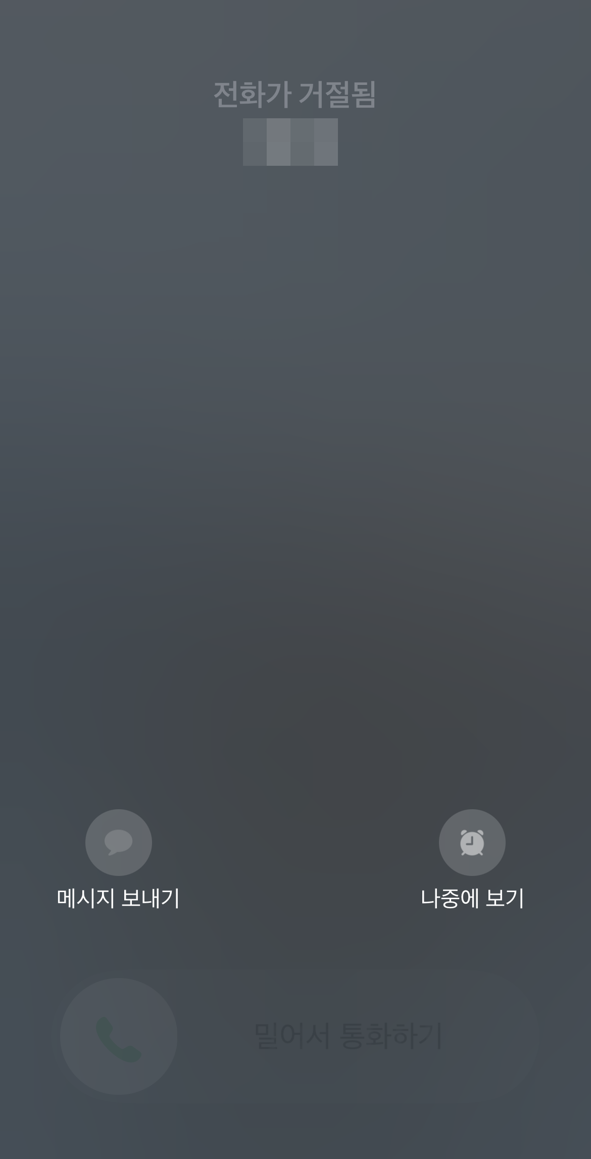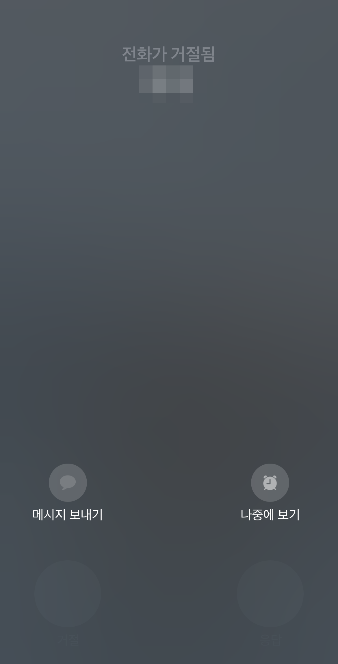 휴대폰을 사용 중이라면 거절버튼과 응답버튼 이렇게 보기 쉽게 나올 것이다. 여기서 아이폰 통화거절을 하기 위해서는 왼쪽에 있는 빨간 거절 버튼을 눌러주면 된다. 그러면 '전화가 거절됨'이라는 문구와 함께 거절이 될 것이다. 상대방에게는 '상대방이 전화를 받을 수 없어...'라는 멘트와 함께 전화가 거절된다.