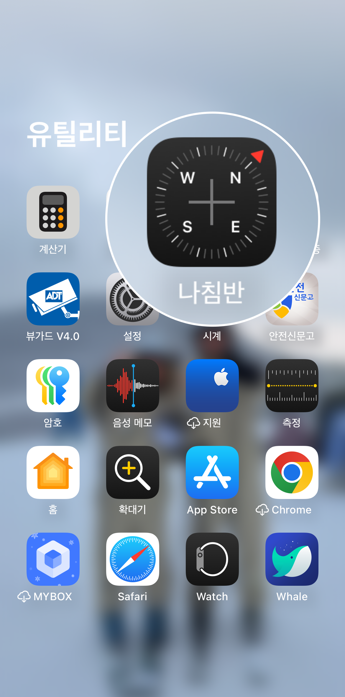 네이버 지도 나침반 말고도 아이폰을 사용하는 사람이라면 기본으로 제공되는 나침반을 통하여 정확한 방위를 알 수 있다. 네이버 지도 나침반과 기존으로 제공되는 나침반 모두 수평을 유지해야 정확한 방위를 알 수 있다. 아이폰 나침반은 지도를 보면서 동서남북을 알 수 없는 단점이 있지만 아주 정확하고 세세한 정보를 알 수 있는 장점이 있다.