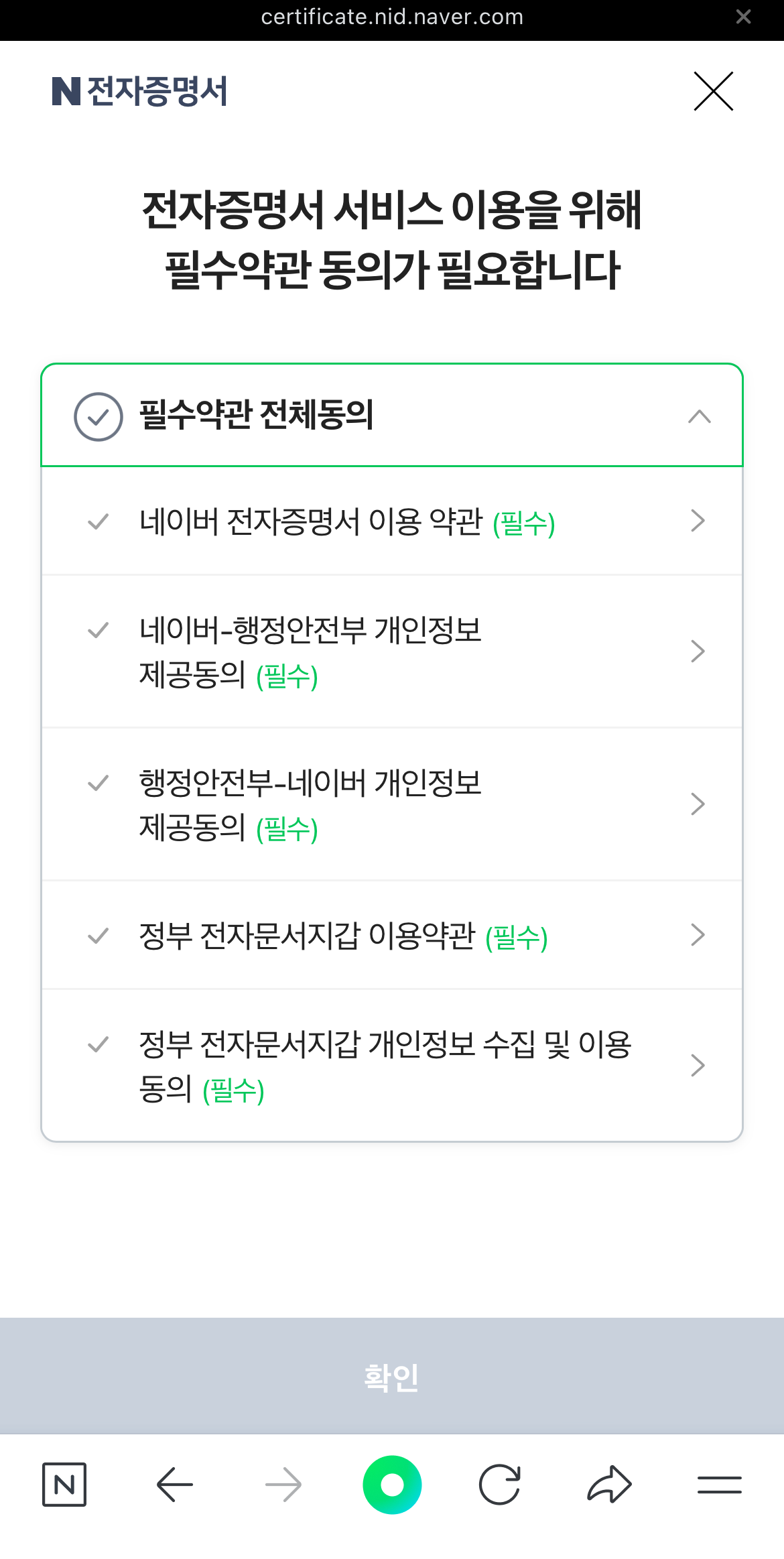 전자증명서를 누르면 '주민등록등본, 졸업증명서 등 쉽게 발급하고 꺼내 쓰세요.'라는 문구와 함께 전자증명서 신청하기 버튼이 보일 것이다. 필수약관 동의를 하면 어떠한 증명서를 발급받을 건지 선택을 할 수 있다. 여기서 네이버 모바일 신분증 발급을 위해서는 주민등록등본이나 운전경력증명서를 선택하도록 하자.
