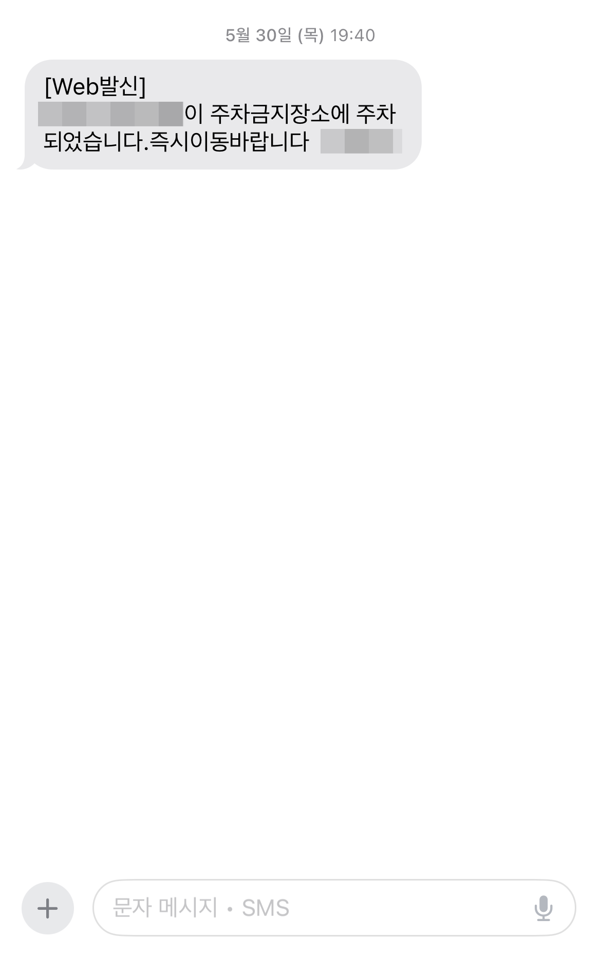 주정차단속알림 서비스에 가입한 차량이 주차금지 구역에 주정차를 했고 단속이 되면 위 사진과 같이 주차금지장소에 주차되었다고 신속히 이동주차를 하라는 문자가 온다. 단속의 기준에 따라 다르겠지만 이동식 불법주정차 단속이라면 이 문자를 받고 바로 이동주차를 하면 단속되지 않는다. 이 문자를 받고도 이동주차를 하지 않으면 과태료를 내야 할 것이다.