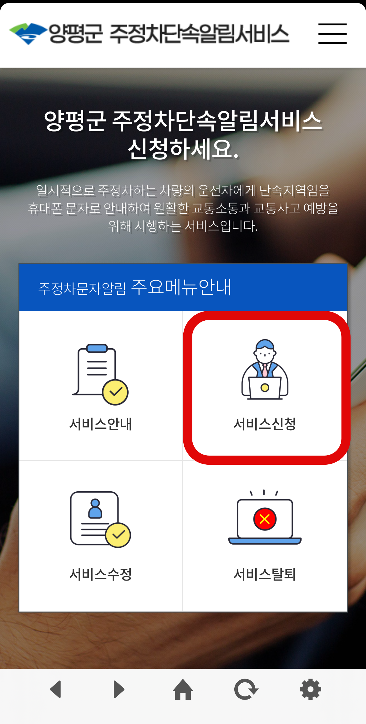 주정차단속알림 서비스는 사전 경고 안내메시지를 보냄으로써 신속한 자진 이동 주차를 유도하고 주정차 질서를 정착시켜 주는 서비스이다. 불법주정차를 하지 않는 것이 가장 좋지만 차량이 점점 많아져 주차공간이 부족하다. 그리고 지하주차장에는 들어가지 못 하는 큰 차량들은 더욱 주차를 하기가 어려워 주차금지구역에 주차를 하는 경우도 있을 것이다. 주정차단속알림 서비스를 신청해서 차량을 이동하라는 문자를 받으면 교통의 흐름을 위해 최대한 빨리 차량을 이동시키도록 하자.