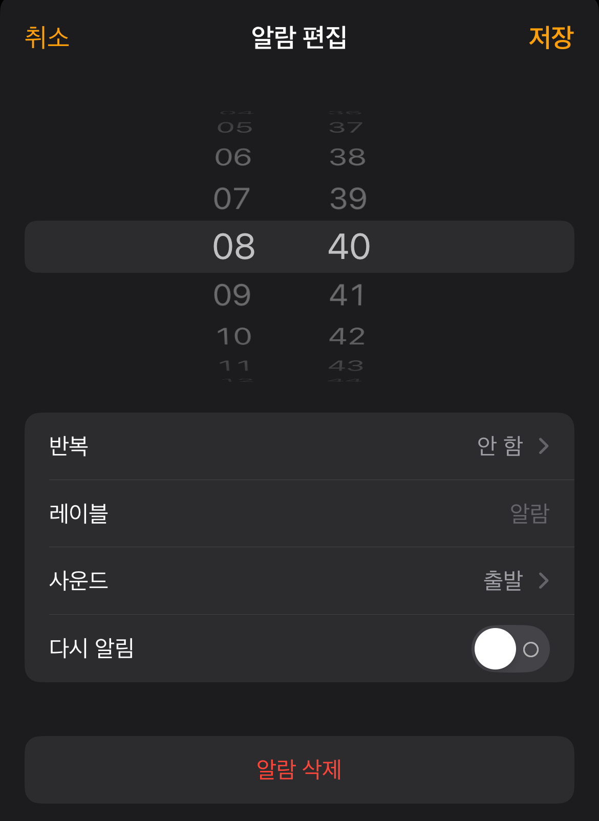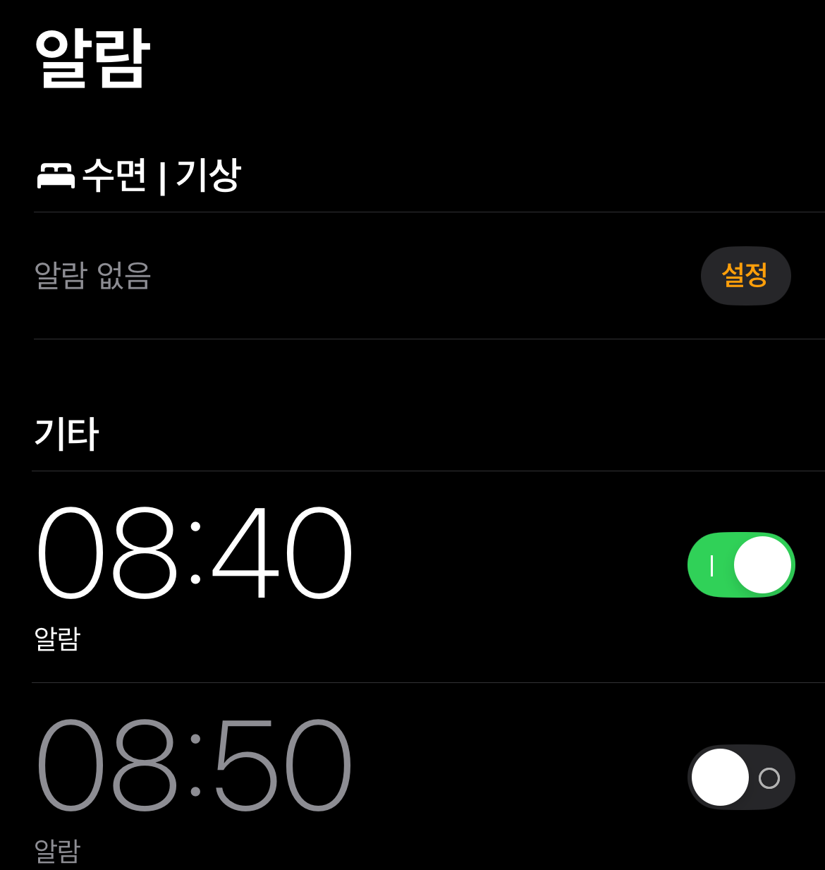 이러한 많은 상황들을 봤을 때 아이폰에도 알람을 설정할 때 아이폰 알람 소리 크기 설정이 가능한 기능을 만들어졌으면 좋겠다.