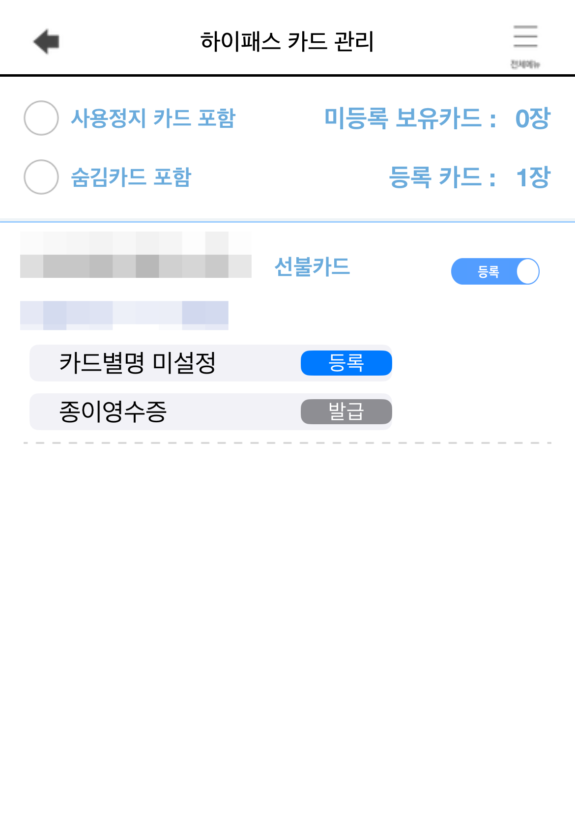 하이패스 사용내역 조회를 하는 가장 간단한 방법은 앱스토어나 구글스토어에서 고속도로통행료 어플을 다운로드한다. 그리고 고속도로통행료 어플에 들어가서 카드관리를 눌러 사용 중인 하이패스 카드를 등록한다. 카드번호를 통해 등록을 할 수 있다. 단말기로 등록도 가능하지만 복잡하니 카드로 등록하는 것이 더욱 편할 것이다.