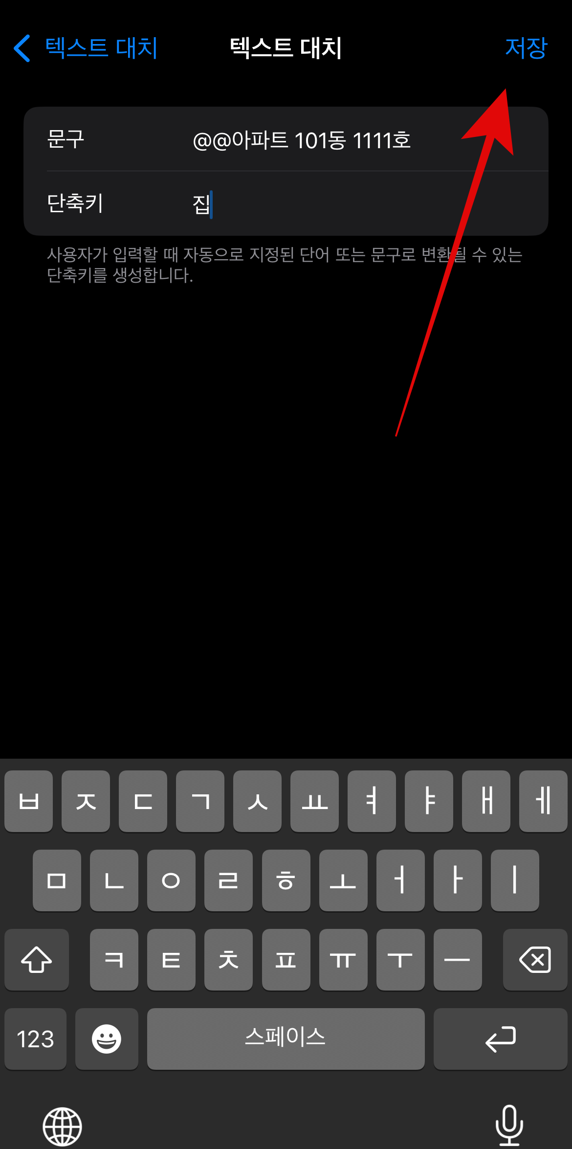 아까는 없었던 집이 추가된 것을 볼 수 있다. 이렇게 되면 아이폰 텍스트 대치 설정이 잘 된 것이다. 그리고 메모장이나 카톡으로 가서 집을 입력해 보면 자동으로 내가 설정한 상세한 주소가 나오는 것을 볼 수 있을 것이다. 이런 식으로 자주 사용하는 문구나 입력하기 어려운 이모티콘, 특수문자들을 설정을 해 놓고 사용하면 편리하게 사용할 수 있을 것이다.