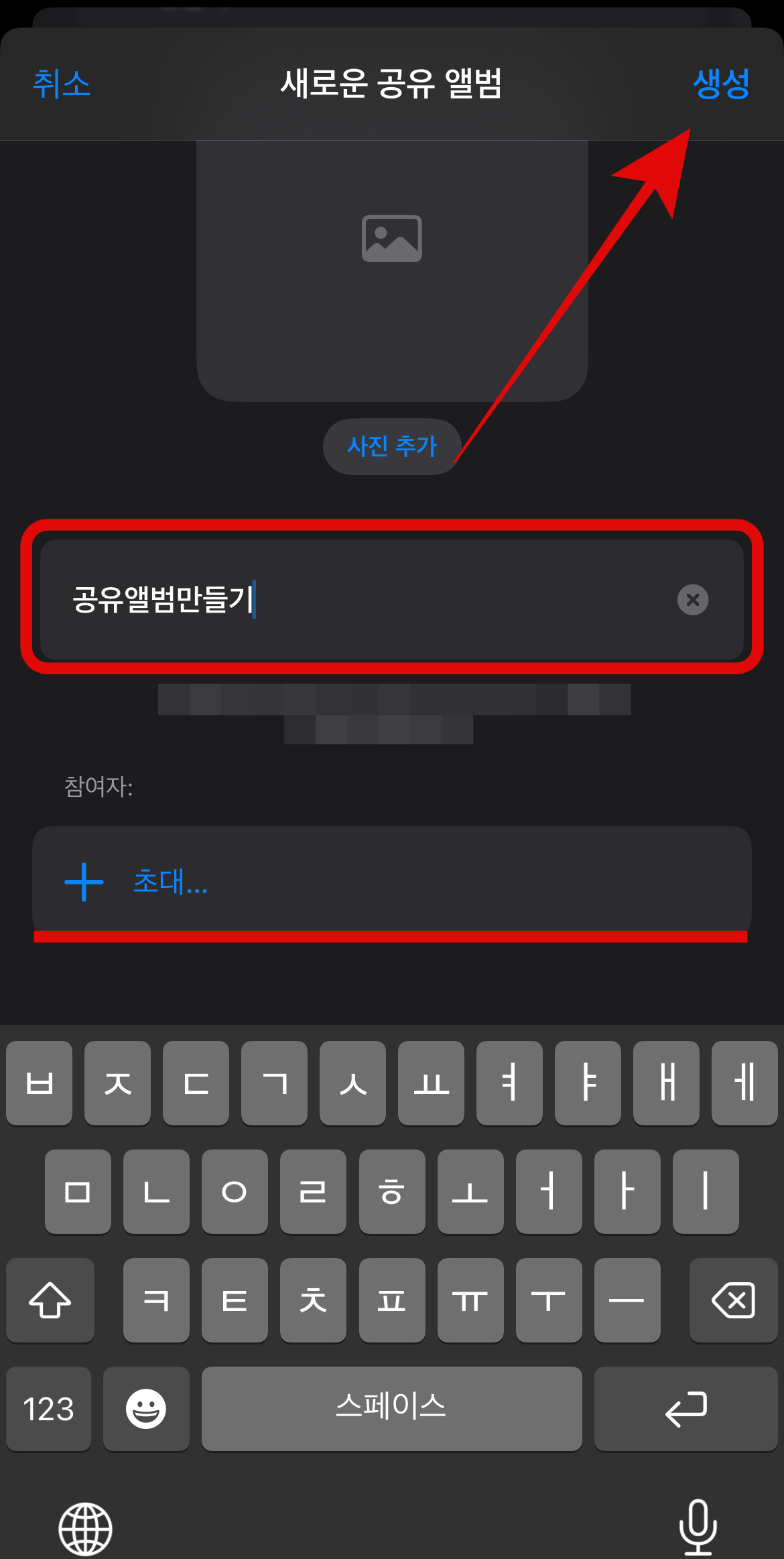 그렇다면 바로 아이폰 공유앨범 만드는 방법부터 알아보도록 하자. 아이폰 사진첩으로 들어가서 스크롤을 쭉 내리다 보면 공유앨범이라는 카테고리가 보일 것이다. 여기서 오른쪽 위에 있는 생성 버튼을 누른다. 그리고 공유앨범의 이름을 저장하고 생성을 눌러주면 아이폰 공유앨범 만들기는 끝이다. 그전에 함께하고자 하는 사람을 초대 버튼을 눌러 추가할 수 있다. 아이폰 공유앨범 초대는 언제든 가능하지 처음에 하지 못 했다고 해서 걱정할 필요는 없다.