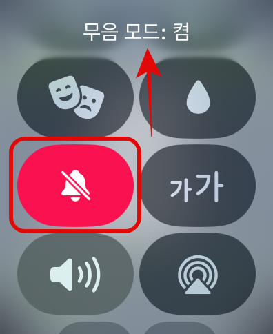 첫 번째로 가장 기본적인 애플워치 무음모드 설정하는 방법이다. 화면을 아래로 스와이프 하거나 측면버튼을 눌러 제어센터를 열어보자. 그리고 스크롤을 조금 내리다 보면 종모양을 발견할 수 있다. 이 종모양을 누르면 '무음모드: 켬'이라는 문구와 함께 애플워치 무음모드 설정이 끝난다. 알림은 오지만 소리 없이 진동으로만 알림이 오는 것을 볼 수 있을 것이다.