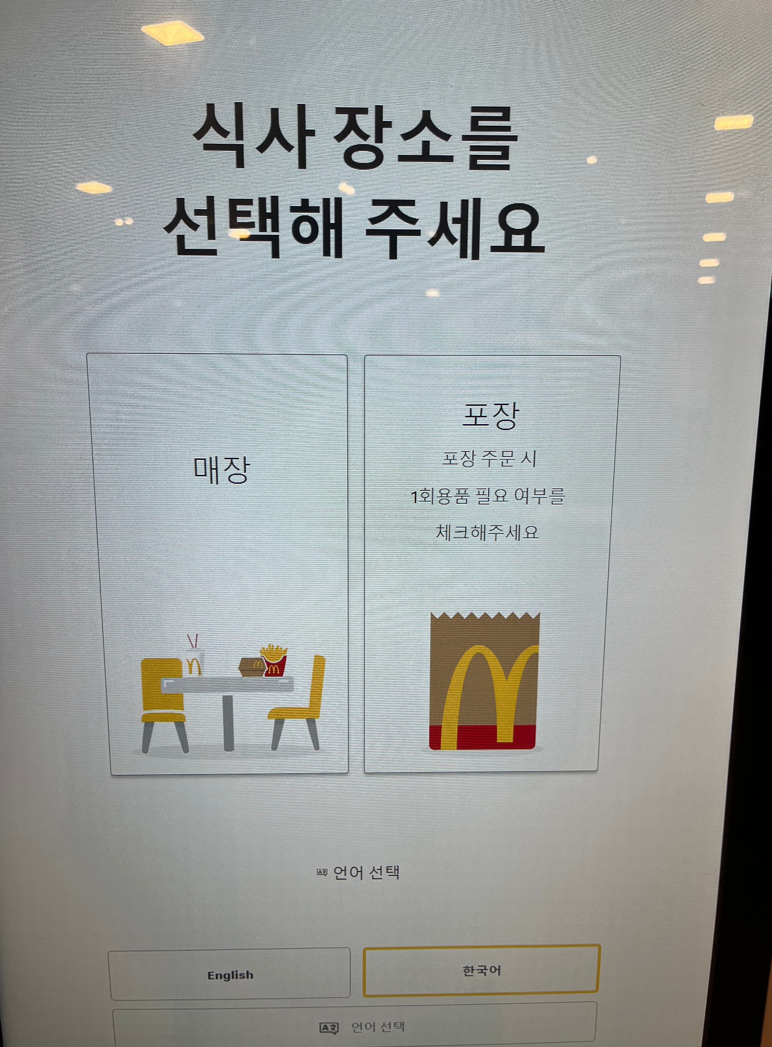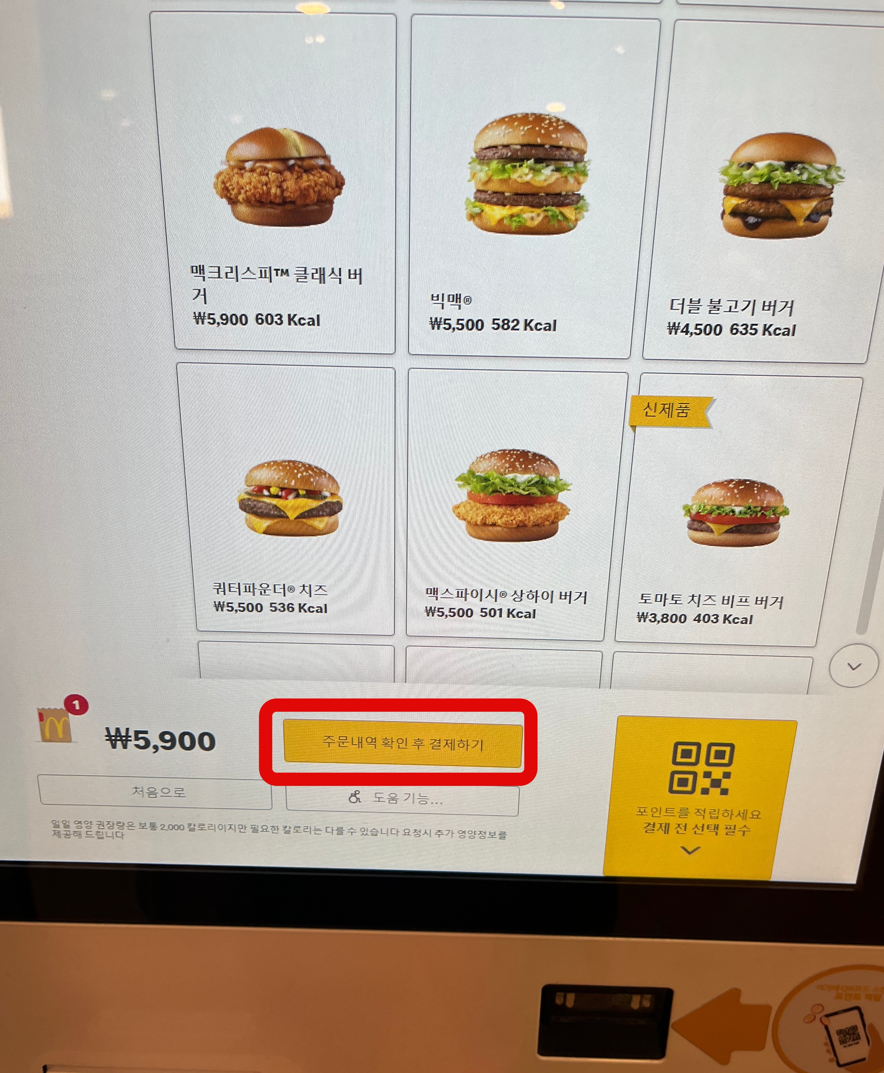 맥도날드 카카오페이 결제 방법은 먼저, 키오스크를 통하여 평소에 먹던 대로 주문을 하면 된다. 매장, 포장을 선택하고 먹고 싶은 메뉴를 담아 주문내역 확인 후 결제하기까지는 일반 카드결제와 똑같이 진행을 한다.