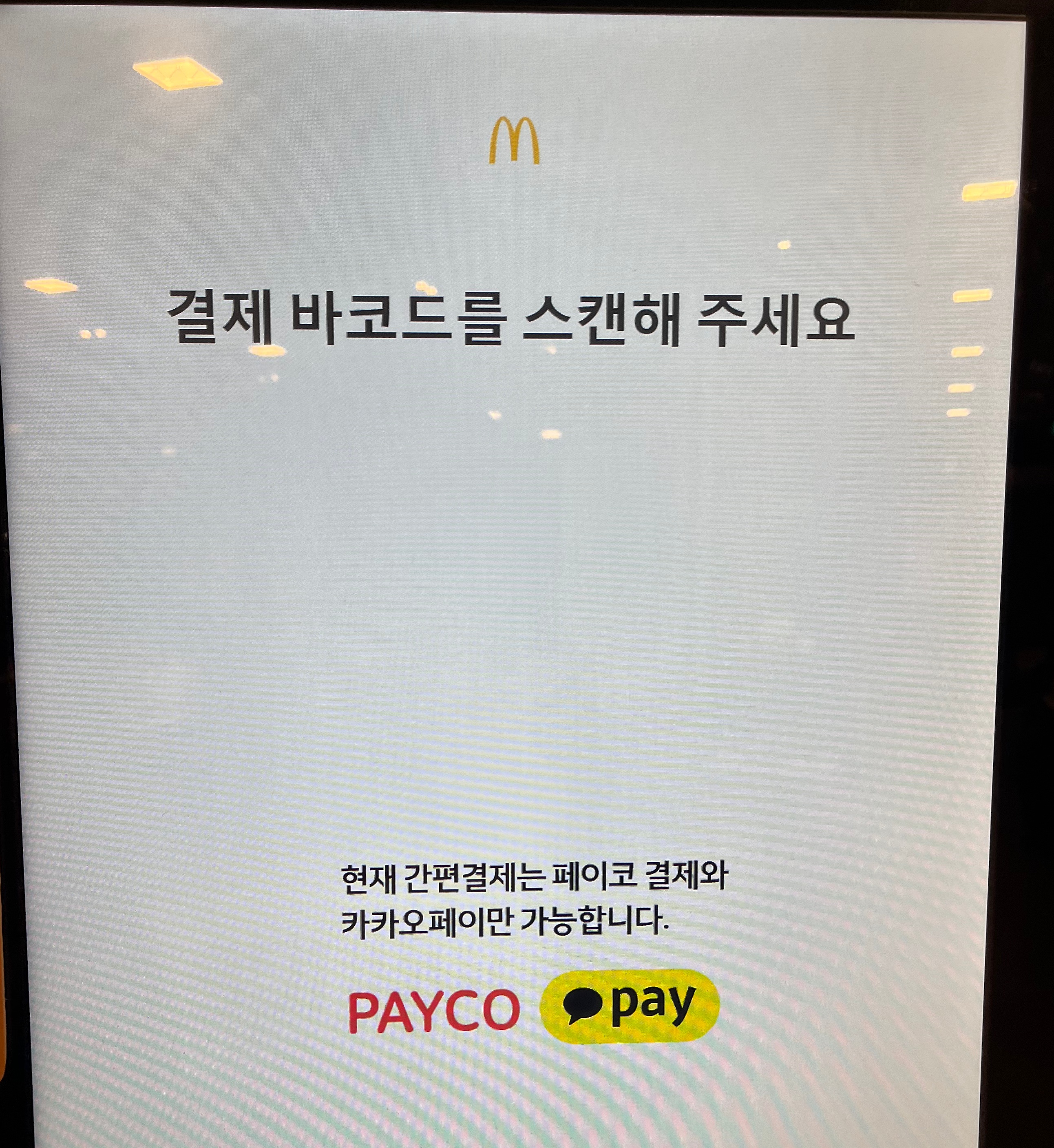 간편 결제를 누르면 '결제 바코드를 스캔해 주세요.'라는 문구가 나오며 아래에 스캔을 할 수 있도록 리더기가 반짝거릴 것이다. 여기에 카카오페이 바코드를 인식시키면 맥도날드 카카오페이 결제가 완료되며 주문이 될 것이다. 그렇다면 카카오페이 바코드를 어떻게 생성하는지 잘 인식시키는 방법은 무엇인지를 알아보자.