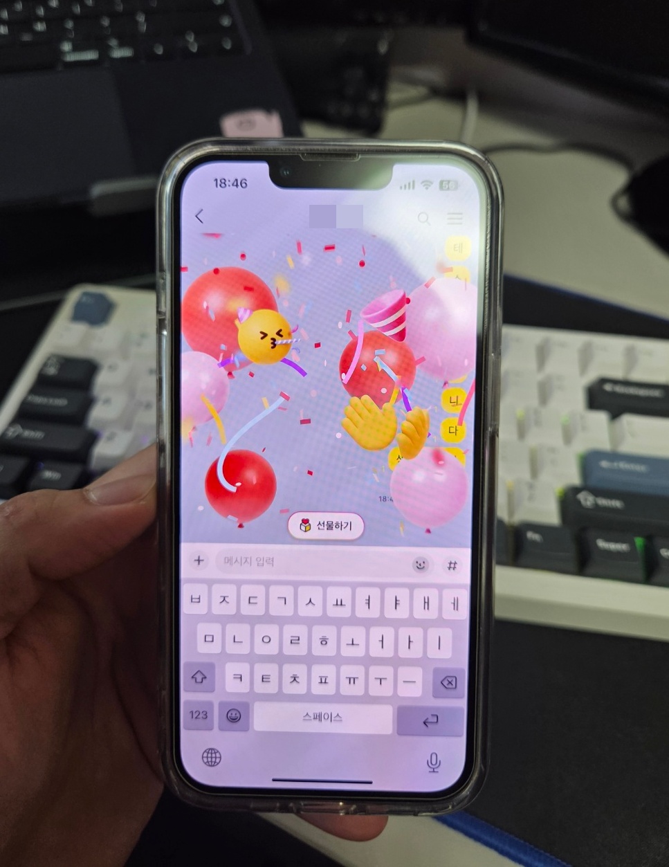 채팅창에 폭죽 쏘기를 눌러 폭죽을 쏘고 나면 카카오톡 선물하기 버튼이 나온다. 상대방에게 선물을 해주고 싶었다면 바로 클릭을 해서 카카오톡 선물하기로 넘어갈 수 있어 쉽게 선물을 할 수 있다. 선물하기로 유도를 하는 것 같은 느낌이 들지만 선물까지 해주면 상대방은 좋아할 것이다.