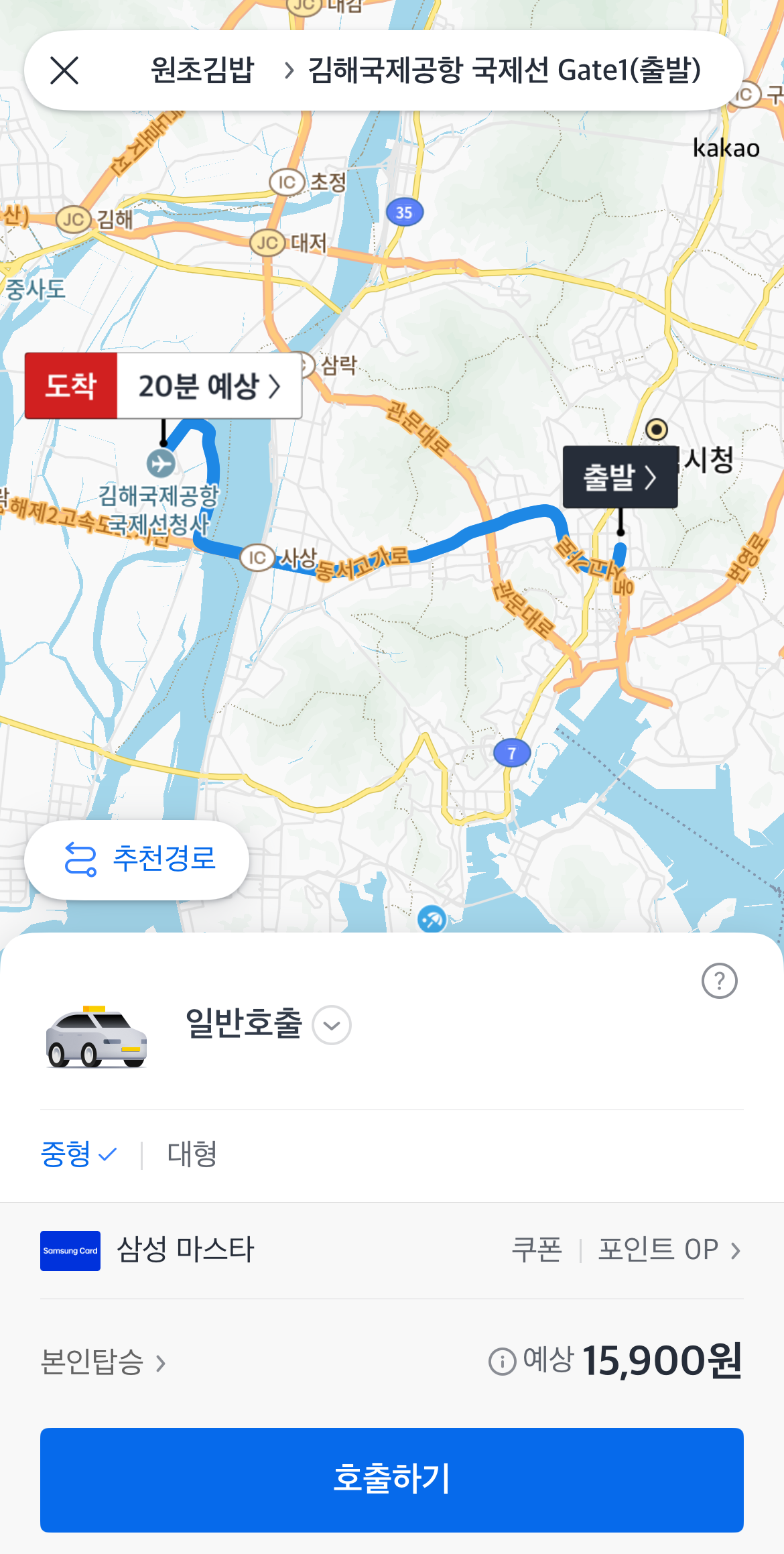그리고 금액 같은 경우에는 예상 금액이고 금액이 덜 나오거나 더 나오면 그 금액에 맞추어 결제가 되니 금액은 참고만 하도록 하자. 카카오택시 어플을 통하여 이동하고 있는 동선도 파악이 가능하여 돌아가거나 금액이 많이 나오게 할 수도 없다.