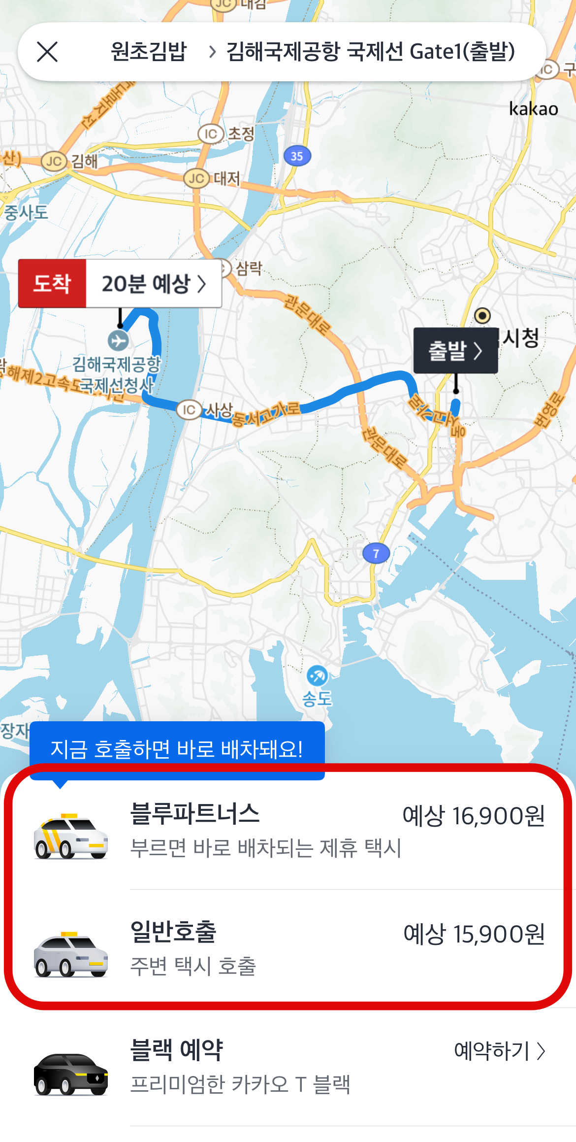 도착지를 입력하면 지도가 나오면서 한 번 더 확인을 할 수 있다. 그리고 택시 호출을 하면 되는데 일반 호출이 있고 블루파트너스 호출이 있다. 일반 호출은 말 그대로 일반 택시를 부르는 것이고 블루파트너스는 부르면 더 빠르게 배차가 되는 제휴 택시를 호출하는 것이다. 금액은 조금 더 비싸니 급하지 않다면 일반 호출을 해도 될 것이다. 마지막으로 호출하기 버튼을 누르면 카카오택시 사용법이 모두 끝이다.