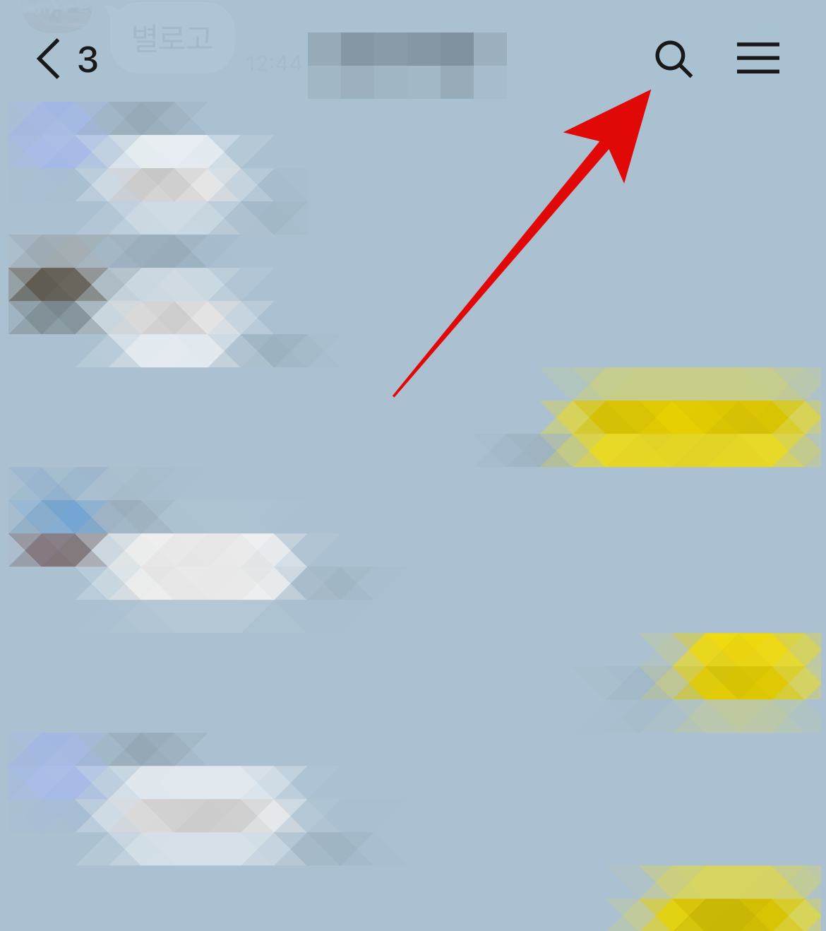 마지막으로 단어나 글자를 검색해서 해당 대화내용을 찾는 방법이다. 마찬가지로 카톡방에 들어가서 돋보기모양을 누른다. 그러면 바로 옆에 대화내용 검색이라는 검색창이 나온다. 여기에 찾고자 하는 대화나 단어를 입력하고 검색을 하면 된다. 비슷한 글자나 단어로는 검색이 안되며 대화내용에 있는 글자 그대로 입력해야 한다. 예전 대화에 오타가 있었다면 그 오타를 검색하여 찾는 방법도 오히려 편할 수도 있을 것이다.