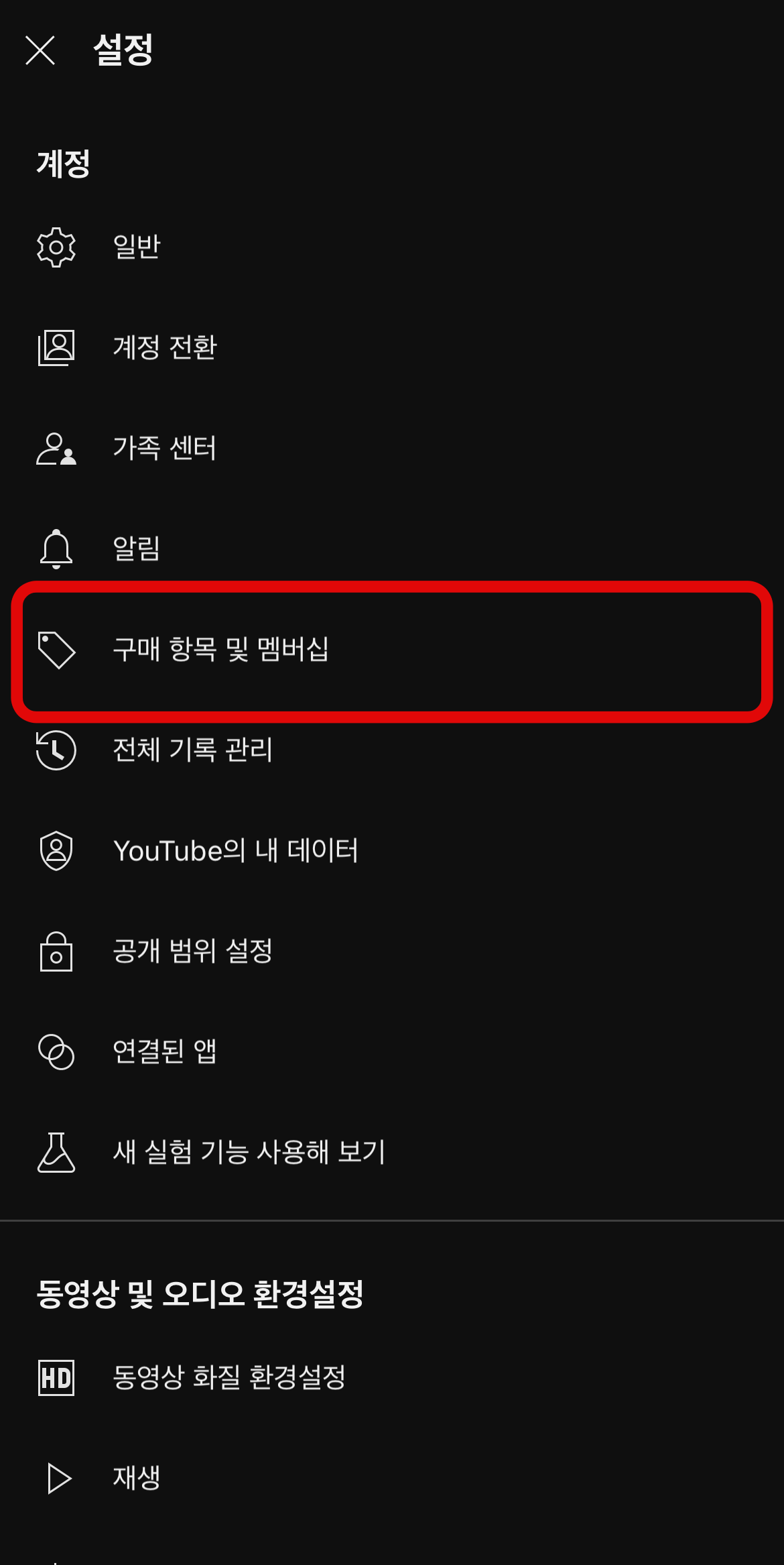 혹시 아이폰 유튜브 프리미엄을 해지하는 방법이 궁금하다면 이렇게 해지가 가능하다. 유튜브에 들어와서 오른쪽 아래에 있는 내 프로필을 누른다. 그리고 오른쪽 가장 위에 있는 톱니바퀴모양의 버튼을 누르면 유튜브 설정에 관한 모든 것이 나오며 여기서 구매 항목 및 멤버십에 들어가 주면 된다. 여기서 나의 구매 항목들을 관리할 수 있는 것이다.