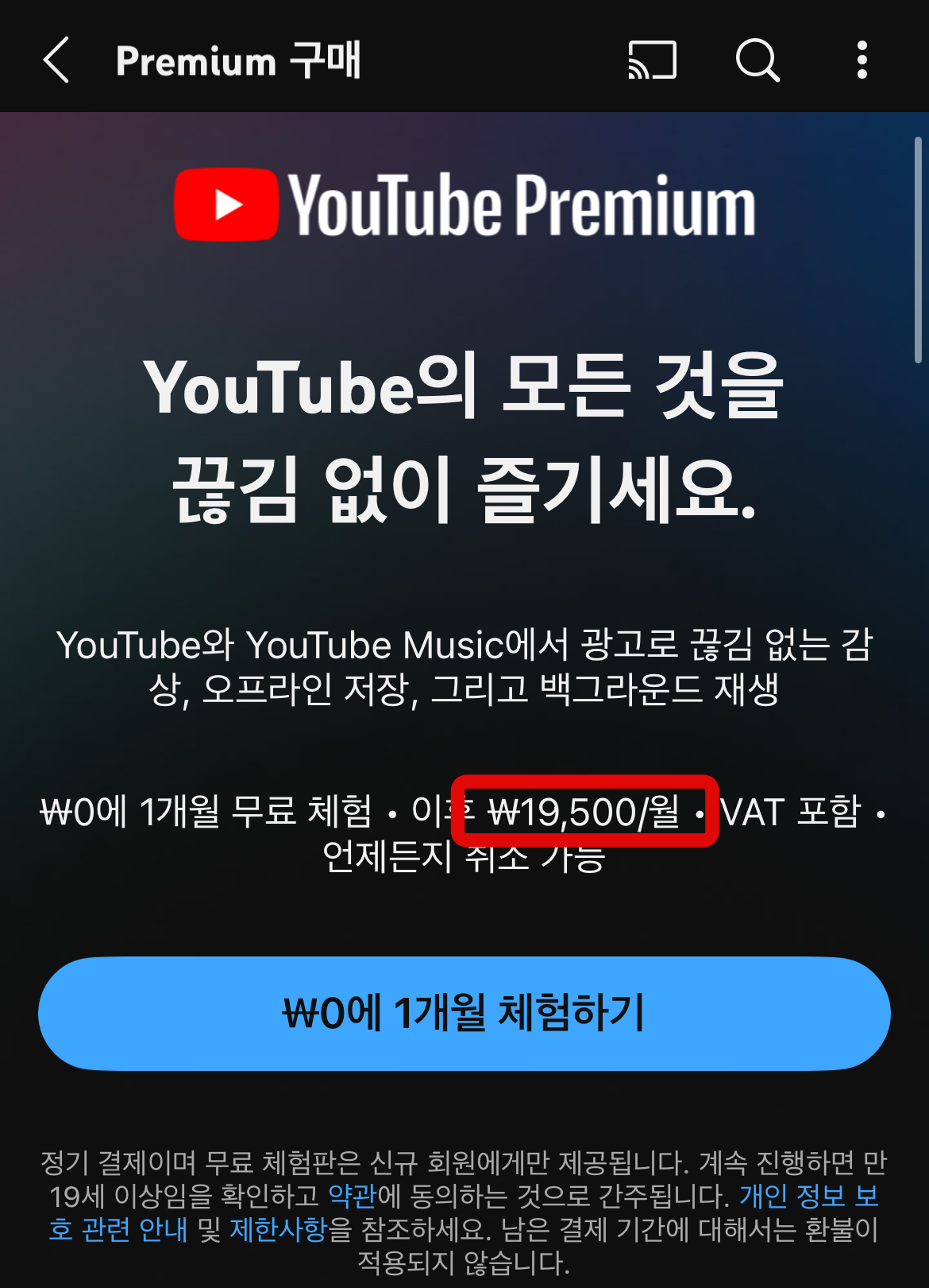 그렇다면 아이폰 유튜브 프리미엄 할인받는 방법에 대하여 바로 알아보도록 하자. 현재 2025년 6월 기준 유튜브 프리미엄 가격은 아이폰은 매달 19,500원이며 PC 혹은 갤럭시는 14,900원이다. 왜 아이폰으로 가입을 하면 비쌀까? 바로 애플 수수료 때문이다. 아이폰만 사용했던 사람이라면 모르고 바로 결제를 하여 매달 19,500원으로 사용을 하고 있을 수도 있다. 그렇다면 할인받는 방법은 어떻게 될까?