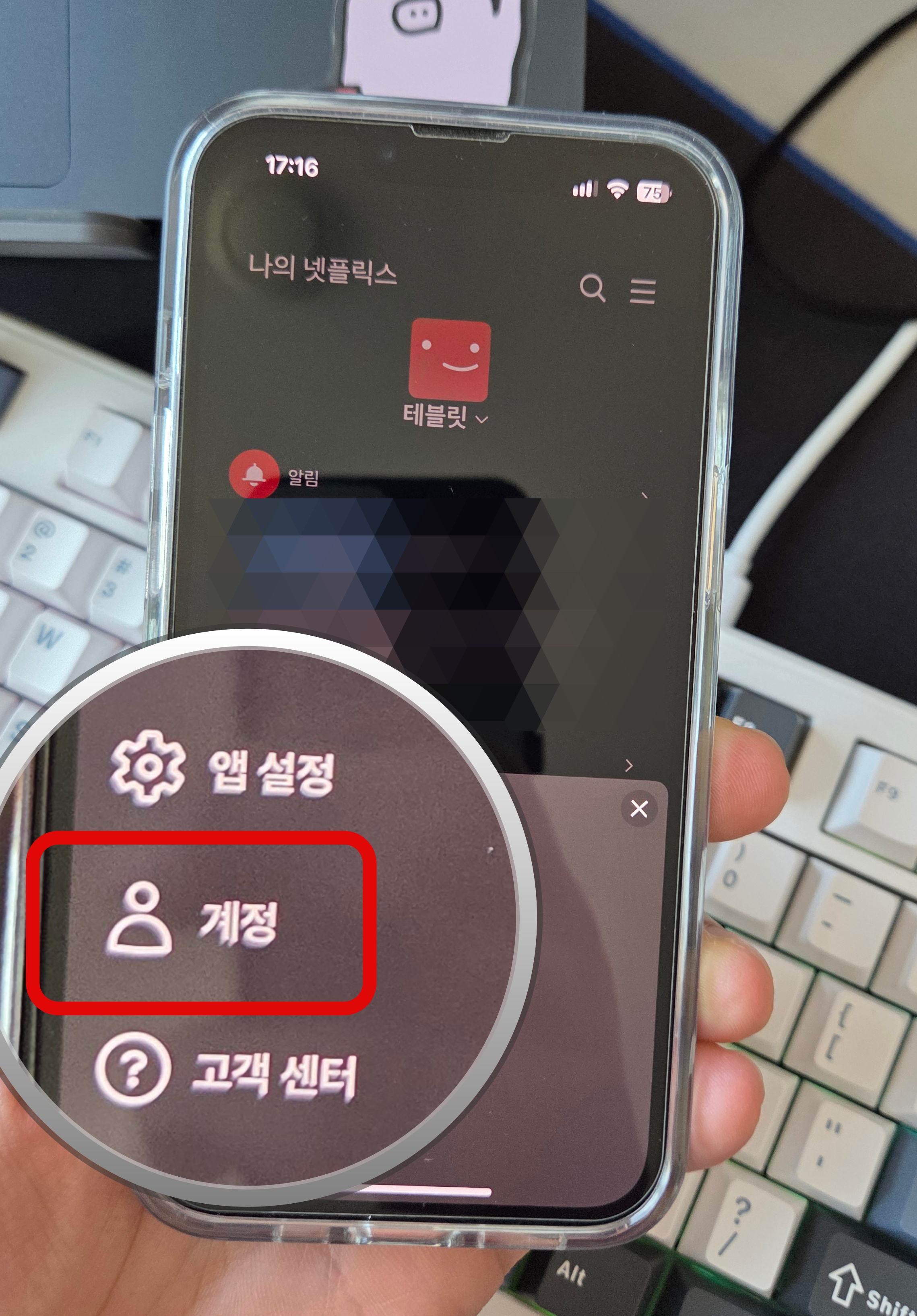 넷플릭스 시청기록 삭제하는 방법은 매우 간단하게 할 수 있으니 사진을 보면서 천천히 따라 해 보자. 먼저, 넷플릭스에 들어가서 시청을 했던 프로필로 들어간다. 그리고 오른쪽 아래에 있는 나의 넷플릭스로 들어가 보자. 그리고 오른쪽 위에 있는 삼선버튼을 누르면 아래에 다양한 설정 버튼이 나올 것이다. 여기서 계정을 눌러 이동하자.