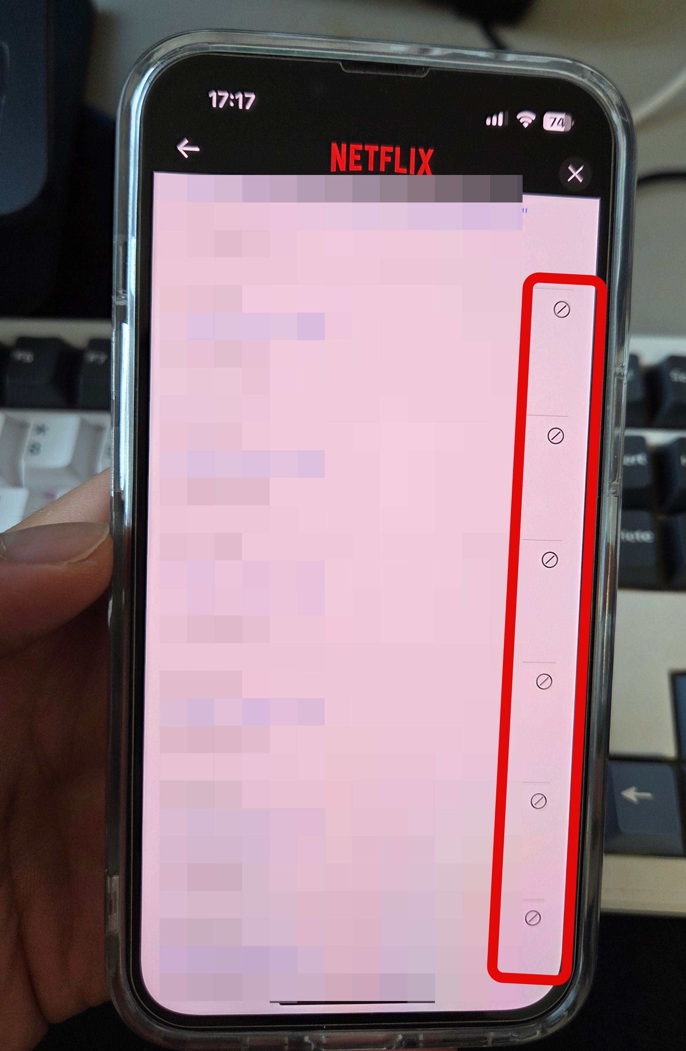 시청 기록 카테고리로 들어오면 이 프로필로 이때까지 봤던 콘텐츠들이 나올 것이다. 여기서 넷플릭스 시청기록 삭제를 하고 싶은 목록 오른쪽에 보이는 삭제(금지) 표시를 눌러보자. 그러면 24시간 이내에 반영된다는 문구와 함께 시청기록이 삭제되는 것을 볼 수 있을 것이다. 이렇게 하나씩 삭제를 할 수 있다.