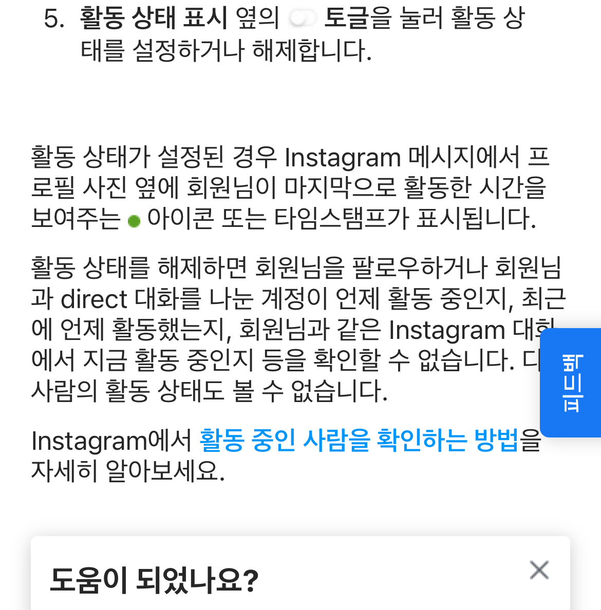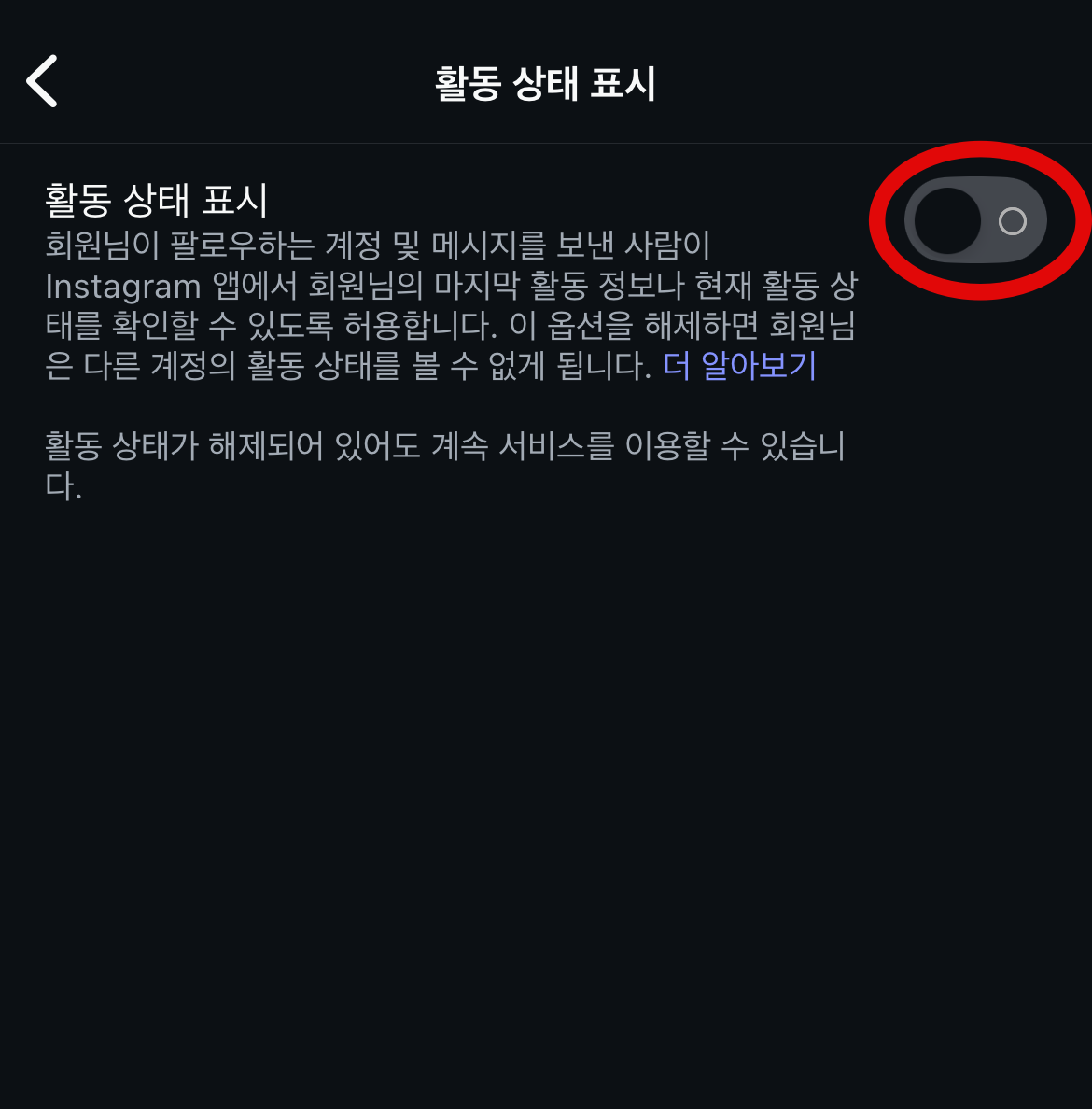 이 버튼을 눌러 인스타 현활 끄기, 활동 중을 껐다면 나에게도 안 좋은 점이 있다. 나의 친구들 팔로우했던 사람들이 활동 중인지, 최근에 언제 들어왔는지도 확인할 수가 없게 된다. 쉽게 말해서 나의 활동 중만 숨기는 것이 아니라 상대방의 활동 중도 알 수 없게 되는 것이다. 하지만 언제 어디서든지 활동 중 상태를 변경할 수 있으니 자신이 필요할 때 설정을 해주면 된다.