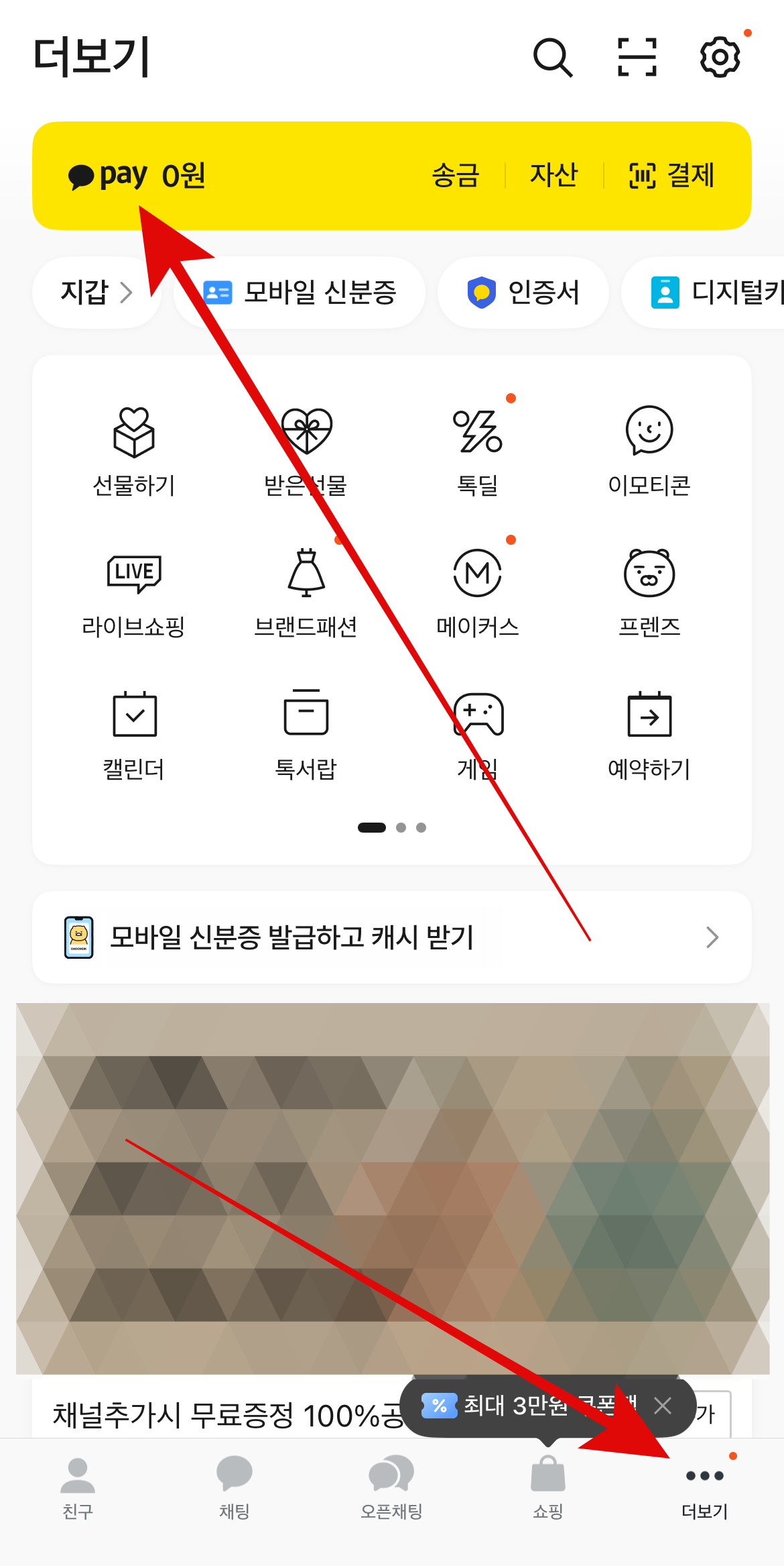 카카오페이 결제 가맹점 찾는 방법은 두 가지가 있다. 먼저, 카카오톡으로 들어와서 오른쪽 아래에 보이는 더보기를 누르고 카카오페이를 눌러 카카오페이 페이지로 들어가도록 하자. 여기에 나오는 매장들이 카카오페이 결제가 가능한 가맹점들이고 중간에 보이는 우리 동네 매장 혜택에서 원하는 지역을 검색하면 그 지역의 카카오페이 결제 가맹점을 찾을 수 있다.