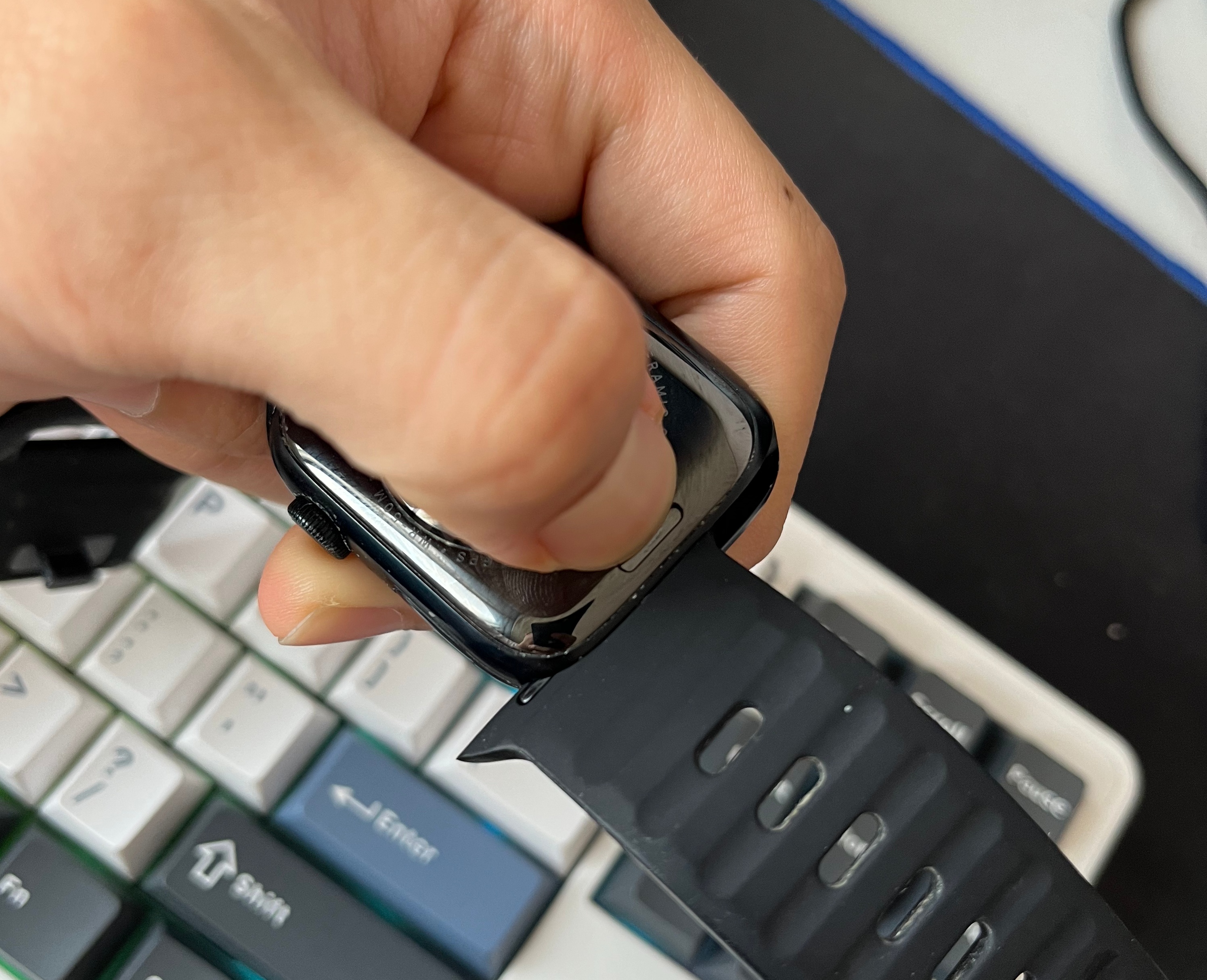이렇게 애플워치 스트랩이 빠지지 않는 상황을 만들고 싶지 않다면 일주일에 한 번이나 이주에 한 번씩 스트랩을 빼서 물티슈로 청소를 해주는 것이 가장 효과적이다. 애플워치를 끼고 땀을 흘리는 사람이라면 더욱 청소를 해주는 것을 추천한다.
