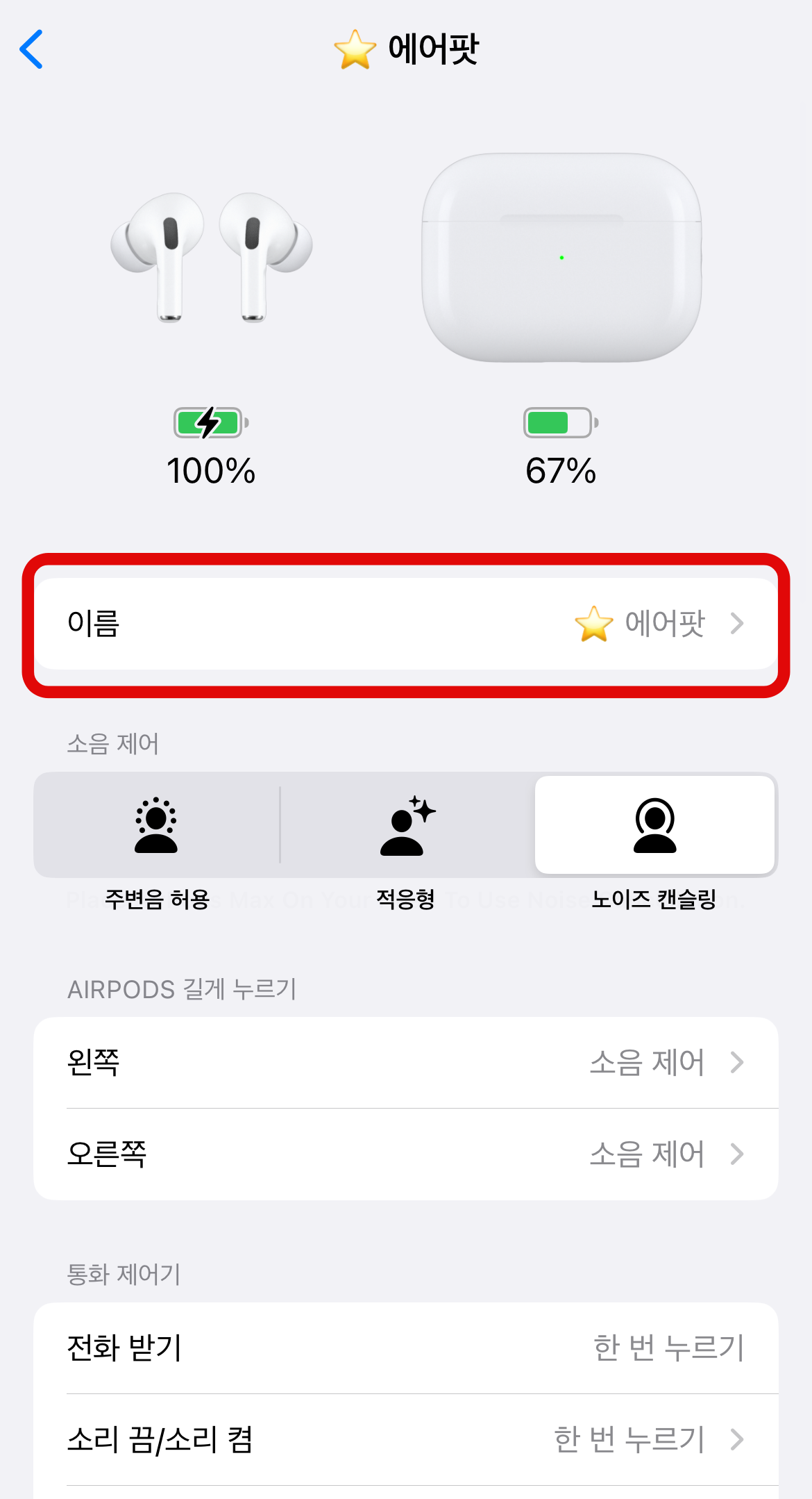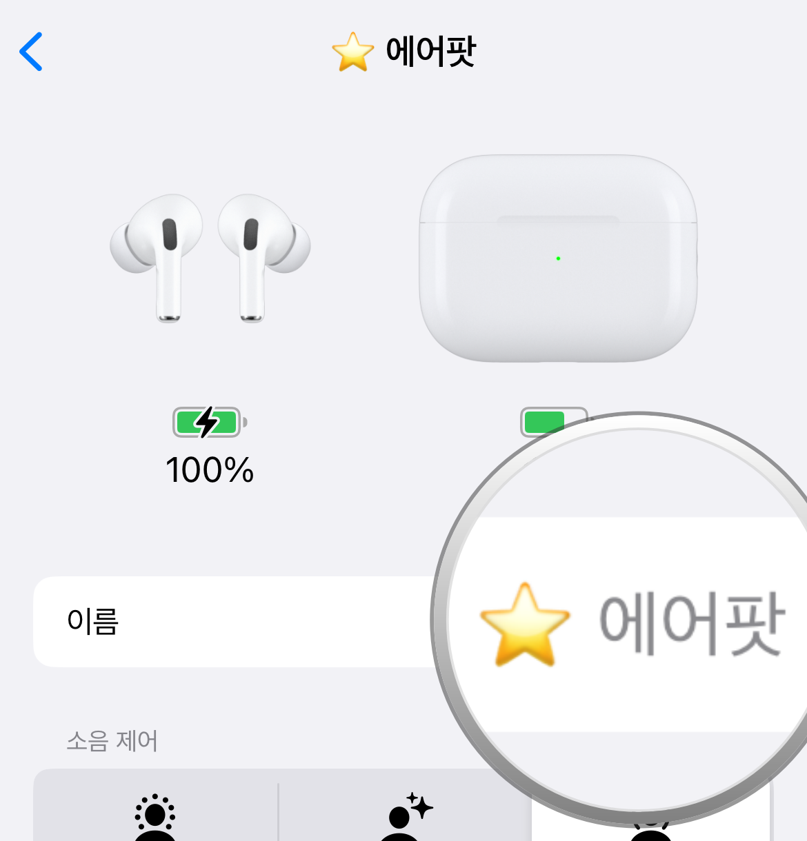 에어팟을 휴대폰과 연결하고 파란색 i 버튼을 누르면 쉽게 에어팟 이름 바꾸기를 할 수 있을 것이다. 가장 위에 보이는 이름을 눌러 원하는 이름으로 바꾸기만 하면 된다. 특수문자나 영어, 한글 다 가능하니 원하는 이름을 설정하고 밖으로 나와보면 설정한 이름으로 바뀌어 있을 것이다. 이렇게 간단하게 에어팟 이름 바꾸기를 할 수 있다.