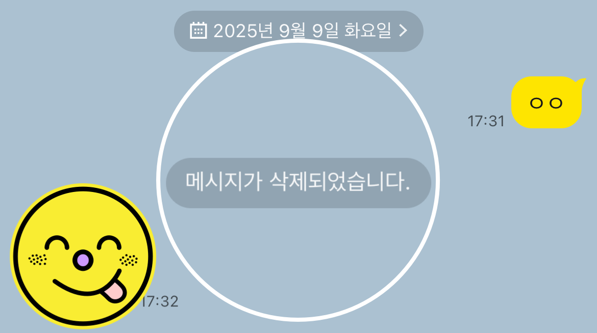 업데이트이전의 카톡 메시지 삭제 시간은 메시지를 보낸지 5분 이내로 할 수 있었고 상대방이 읽으면 삭제를 할 수 없었다. 하지만 업데이트 후 24시간 이내에 상대방이 읽었더라도 삭제가 가능하다. 그리고 삭제를 했다고 하더라도 삭제된 메시지입니다.라는 문구가 나의 말풍선에서 나왔다. 하지만 이제는 중간에 날짜처럼 나오기 때문에 단체톡방에서 삭제를 했다면 누가 삭제를 한지 모르게 될 것이다.