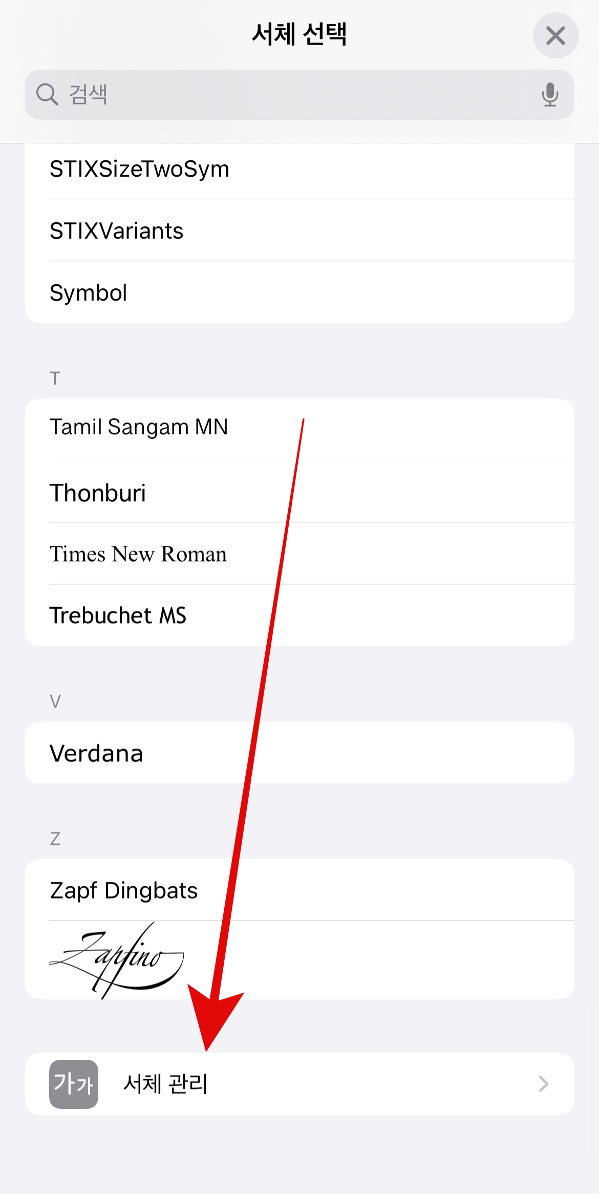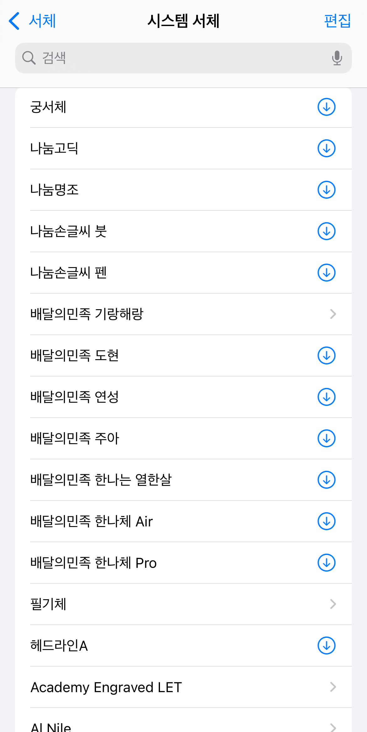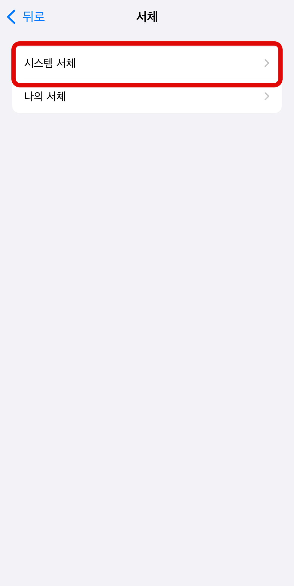원하는 글씨체가 없다면 OS서체를 눌러 들어가 보자. 여기에도 몇 가지 글씨체가 있어 원하는 글씨체가 있다면 여기서 선택해도 되며 가장 아래로 스크롤을 내리면 서체 관리로 바로 이동할 수 있을 것이다. 다른 글씨체를 선택하기 위해서 서체 관리로 가서 시스템 서체로 들어가자.