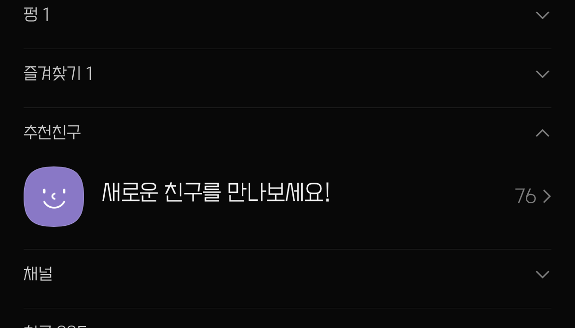 친구 추천 허용을 비활성화하면 이렇게 추천 친구가 있던 카테고리 자체가 사라지게 된다. 상대방의 추천 친구에서도 내가 사라지게 될 것이다. 친구 추천에 모르는 사람들이 많다면 상대방들에게도 내가 추천 친구로 나올 수도 있으니 카톡 친구 추천 안 뜨게 설정을 하여 상대방이 나를 볼 수 없도록 해보자.