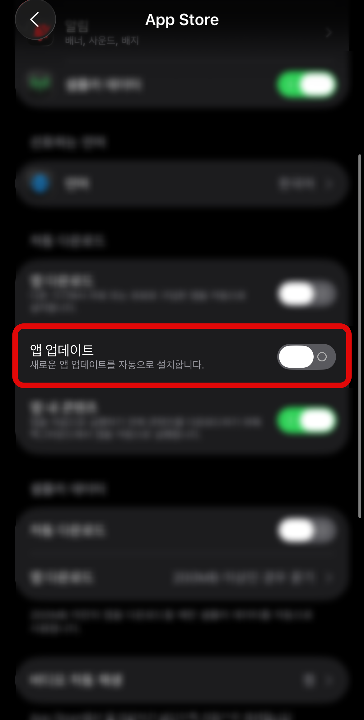 카톡 자동 업데이트 끄기는 카카오톡에서 설정을 하는 것이 아니라 아이폰 설정으로 들어가야 한다. 아이폰 설정에 들어가서 가장 아래에 있는 앱으로 들어가 보자. 여기서 앱스토어를 찾아 들어간다. 그리고 스크롤을 조금 내리면 중간에 '앱 업데이트'가 보일 것인데 활성화되어 있는 것을 눌러 꺼주면 카톡 자동 업데이트 끄기가 될 것이다.