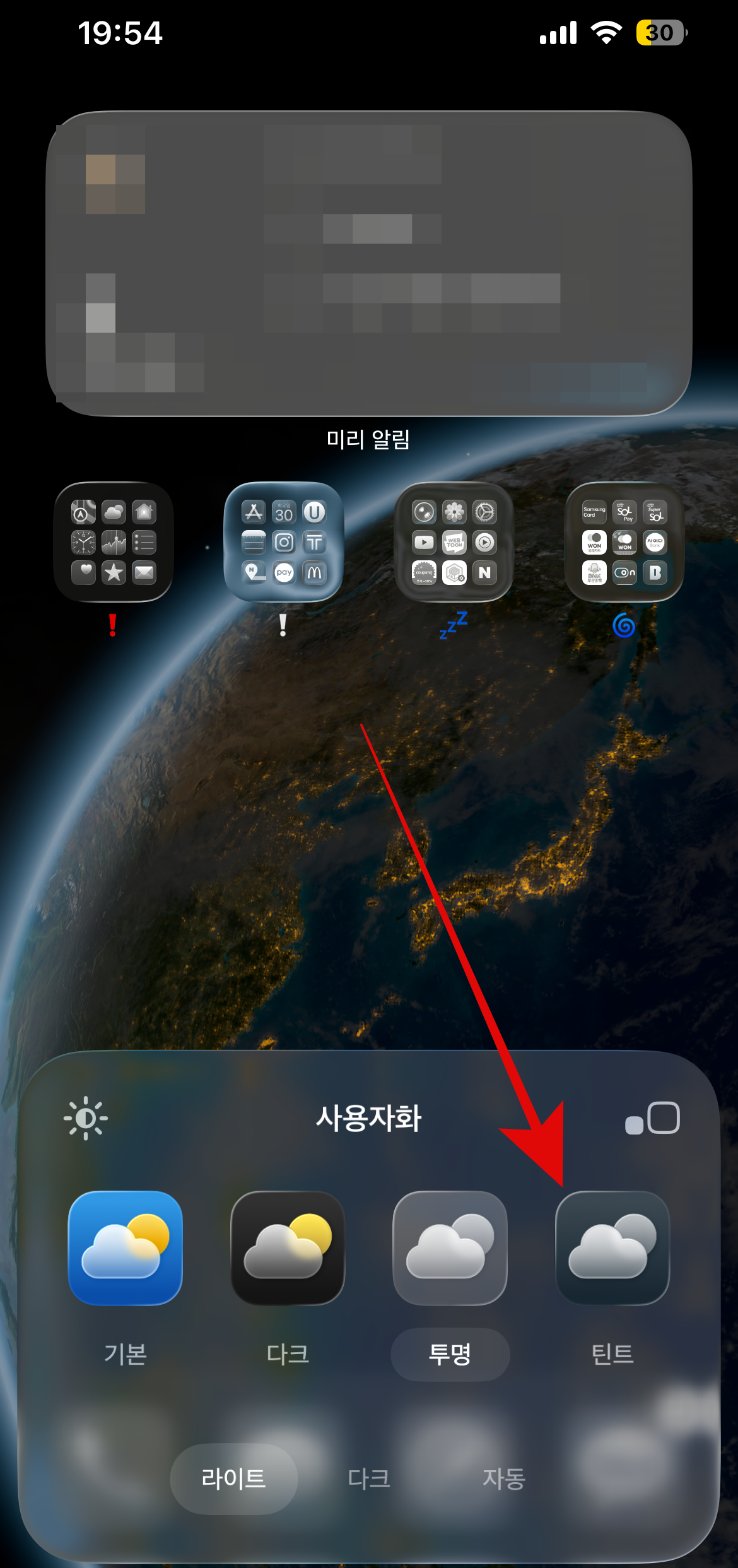 아이폰 업데이트 투명 바꾸는 법은 매우 간단하다. 설정에서 찾고 있었다면 시간이 조금 걸렸을 수 있다. 홈 화면으로 나와 빈 공간을 꾹 눌러보자. 그러면 앱들이 덜덜 떨며 홈 화면 설정이 가능하다. 여기서 왼쪽 위에 있는 편집을 누르고 사용자화를 누른다. 아래를 보면 기존에는 없었던 투명과 틴트가 보일 것이다. 여기서 투명을 눌러주면 모든 앱들이 물방울스러운 투명으로 바 뀔 것이다.