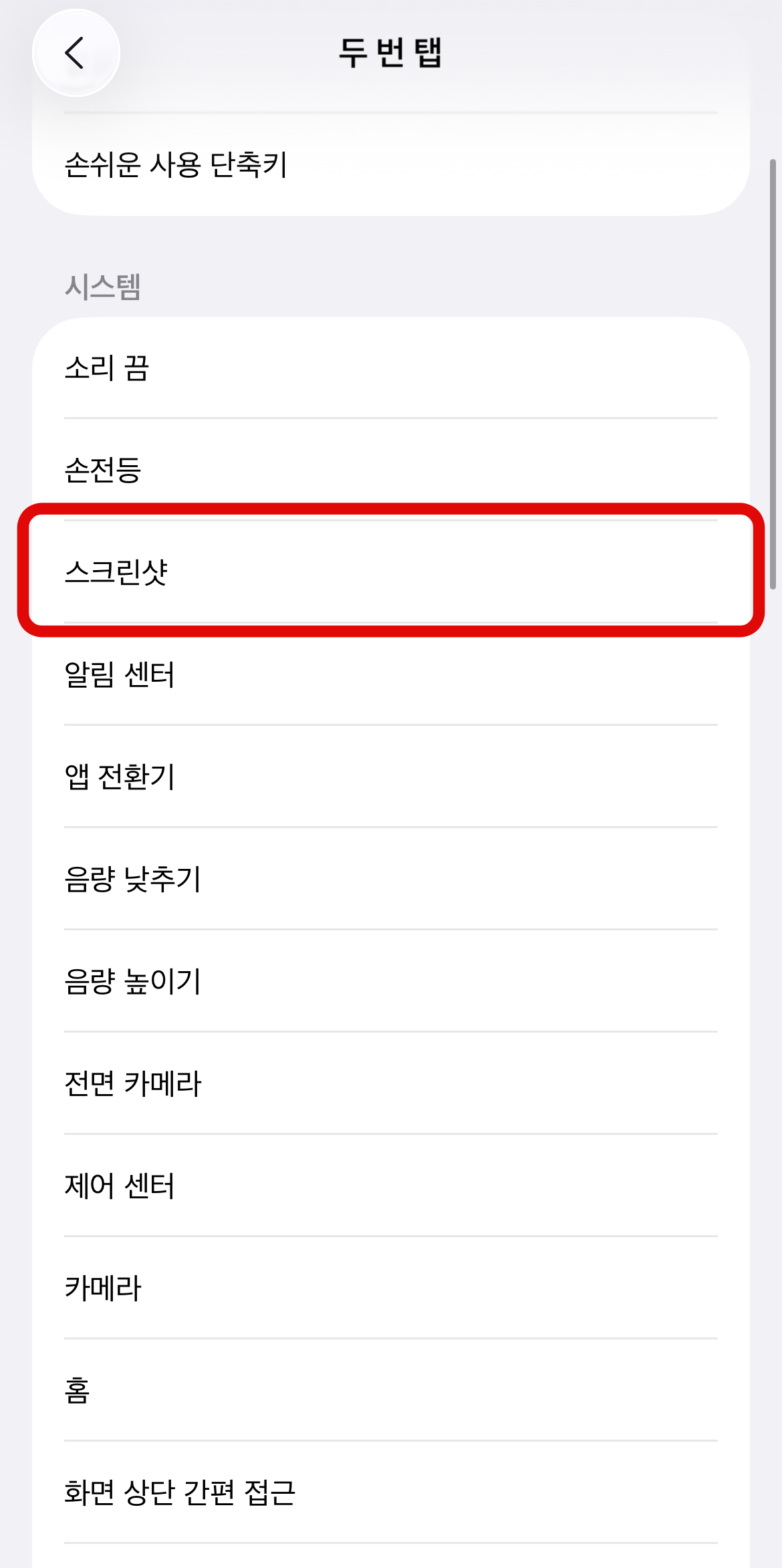 아이폰 뒷면 탭은 두 번 탭, 세 번 탭으로 두 가지 설정을 할 수 있다. 원하는 탭에 원하는 설정을 넣고 뒤로 돌아가면 설정이 완료된다. 아이폰 뒷면 탭 스크린샷을 설정했다면 휴대폰 뒷면을 톡 톡 탭을 하면 스크린샷이 되는 것을 확인할 수 있을 것이다. 빠르게 하지 않아도 되니 천천히 해보도록 하자. 세 번 탭에 설정을 했다면 두 번이 아니라 세 번 톡 톡 톡 탭을 해주면 된다.