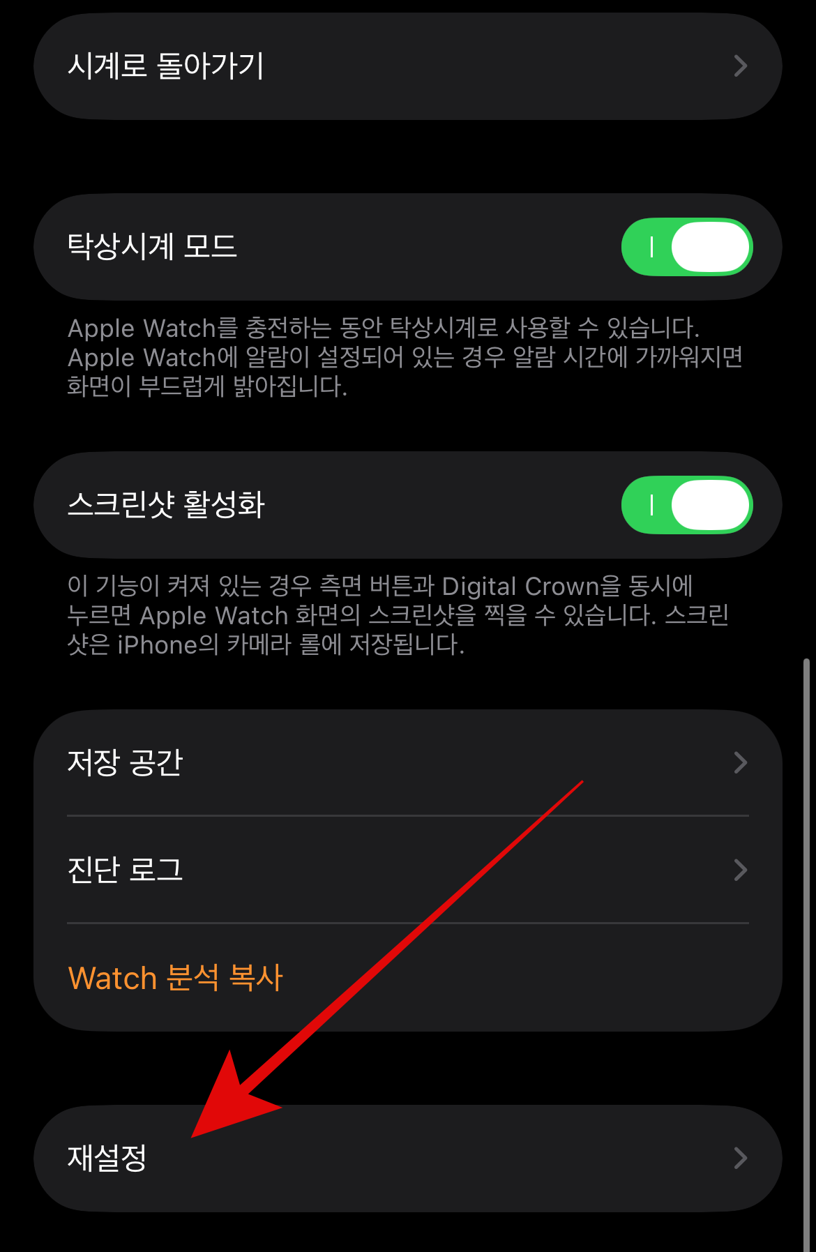 애플워치 비밀번호 재설정을 위한 초기화는 애플워치에서 뿐만 아니라 아이폰이 연동되어 있다면 아이폰에서도 가능하다. 아이폰에서 애플워치로 들어가서 일반으로 들어간다. 그리고 가장 아래로 스크롤을 내리면 재설정이 보이는데 여기서 애플워치의 콘텐츠 및 설정 지우기를 누르면 애플워치가 재설정되며 다시 비밀번호 재설정을 하면 된다.