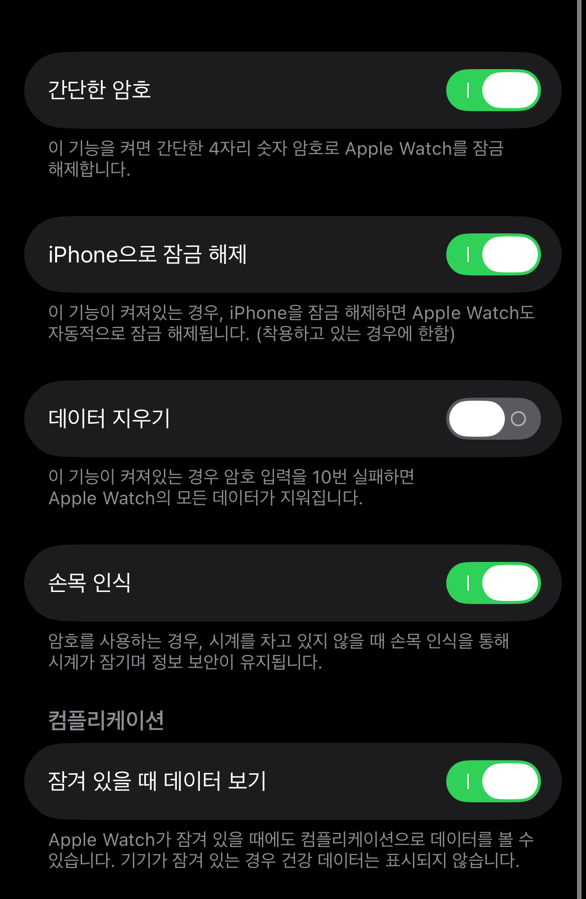 아이폰이랑 애플워치가 연동이 되어있다면 암호로 들어가서 아이폰으로 잠금 해제를 활성화시켜 놓으면 애플워치를 착용하고 근처에서 아이폰을 잠금해제하면 애플워치도 함께 잠금 해제가 되는 것을 볼 수 있을 것이다. 애플워치 비밀번호 까먹음, 분실 시에 아직 내 아이폰과 연동이 되어있고 저 기능이 활성화되어 있다면 애플워치를 착용하고 근처에서 아이폰의 잠금을 풀어보도록 하자. 이 아이폰으로 애플워치가 잠금 해제 되었다는 문구와 함께 애플워치의 잠금이 풀릴 것이다.
