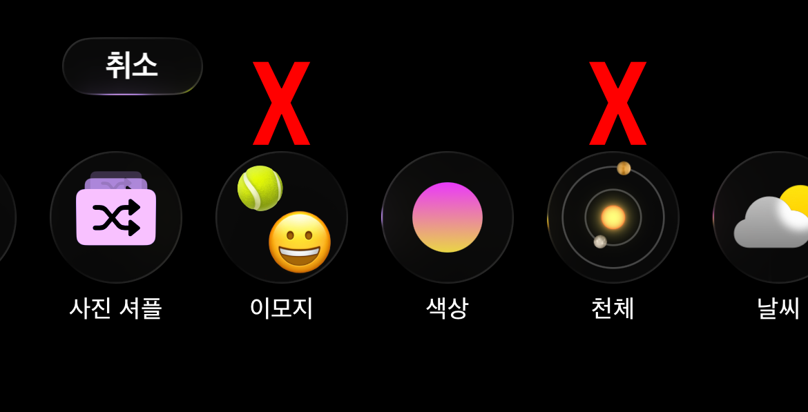 아이폰 시계 늘리기의 첫 번째 조건은 현재 나의 배경화면의 종류이다. 지금 나의 배경화면이 이모지 또는 천체로 되어있다면 위의 방법과 똑같이 진행을 해도 시계 오른쪽 아래에 버튼이 나타나지 않을 것이다.