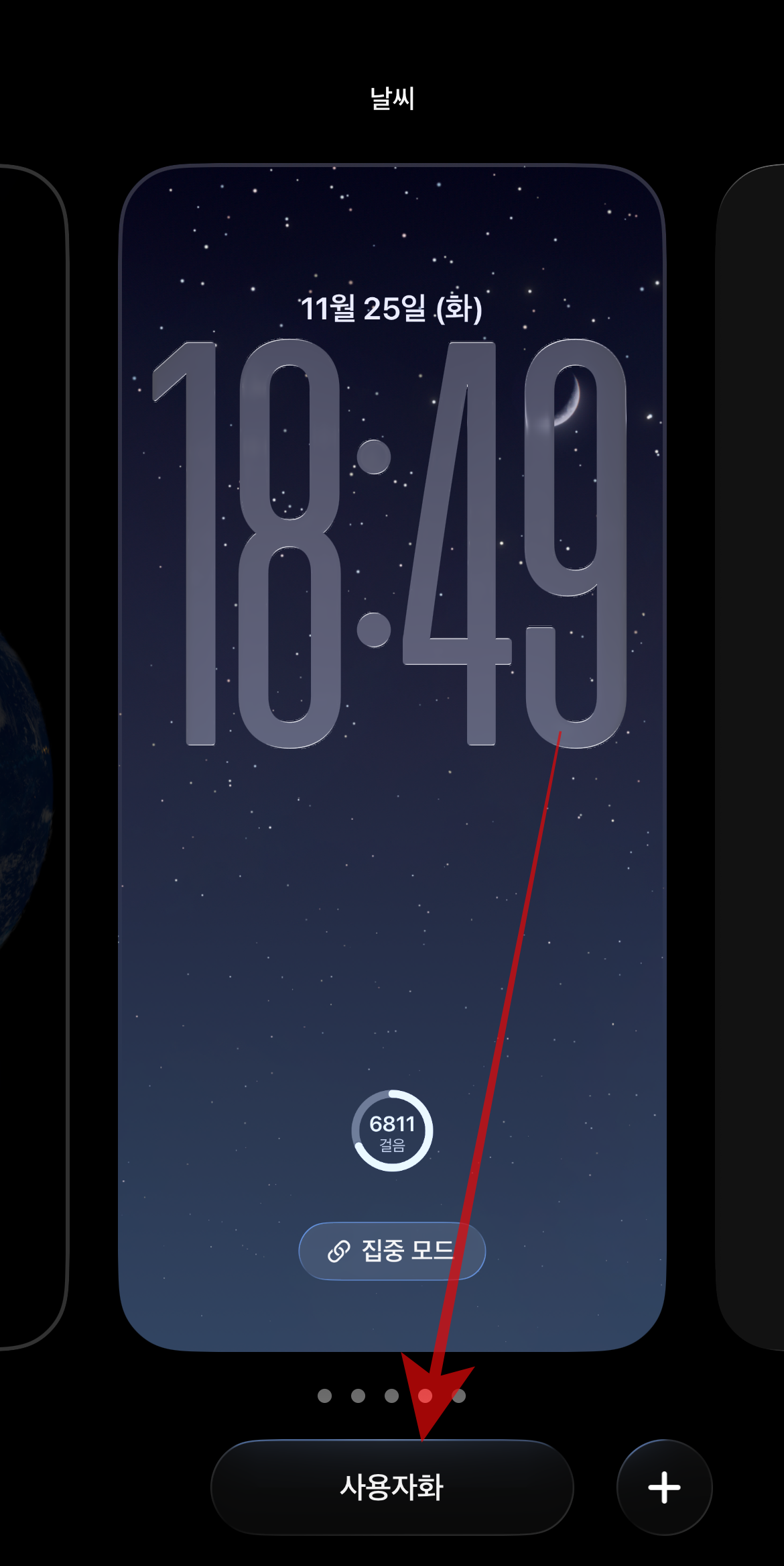 그럴 때는 잠금화면을 꾹 누르고 오른쪽 아래에 있는 +버튼을 통하여 새로운 잠금화면을 만들어 주면 된다. 이모지나 천체만 아니면 아무 거나해도 상관없다.