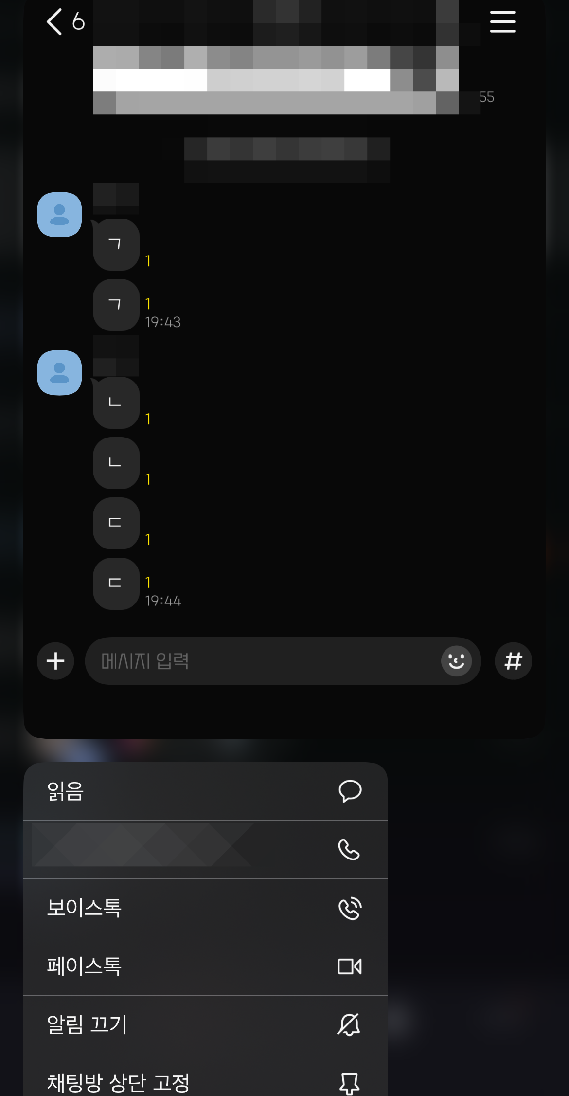 다음 방법으로는 최신 버전 업데이트 이후에만 가능한 방법이다. 채팅 전체를 볼 수 있는 것은 아니지만 간단하게 최근 채팅을 볼 때는 편하게 사용할 수 있을 것이다. 카톡 미리보기 원하는 카톡방을 꾹 눌러보자 실수로 터치를 떼어버리면 읽어지니 집중해야 한다. 꾹 누르면 그 채팅방에 관한 설정들을 할 수 있는데 여기서 최근 내용을 확인할 수 있다. 그리고 빈 공간을 눌러 나가 주면 1을 없애지 않고 카톡 몰래 보기가 가능하다.