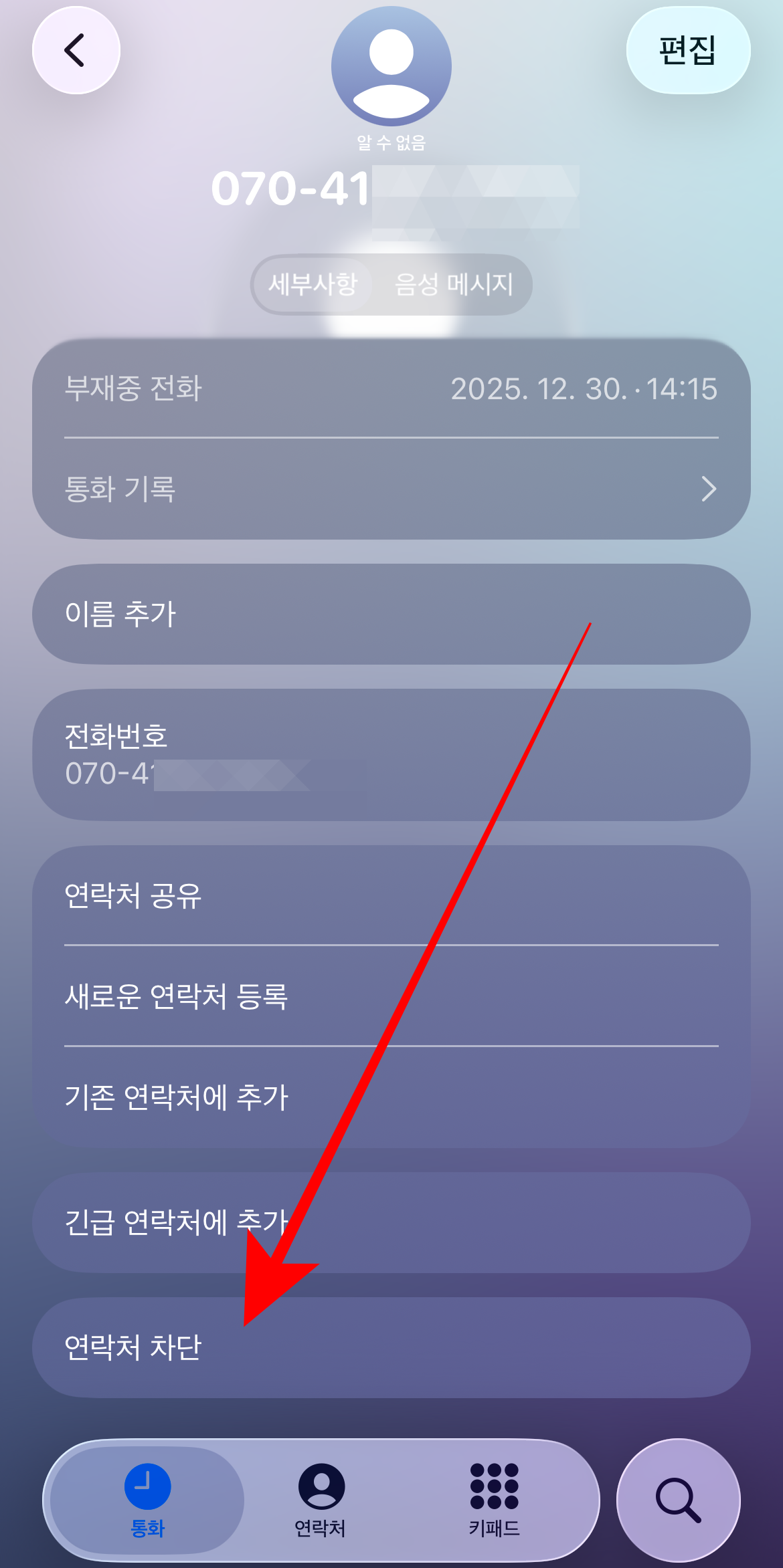 아이폰 연락처 차단이 제대로 되었다면 해당 번호를 눌렀을 때 차단됨 표시가 나올 것이다. 그리고 통화 목록에서도 번호 앞에 차단표시가 있는 것을 확인할 수 있다. 이렇게 차단된 연락처들을 어떻게 볼 수 있는지 차단 해제는 어떻게 하는지 이어서 알아보도록 하자.