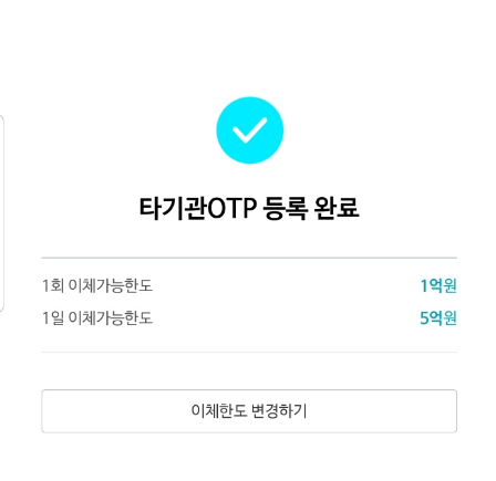 타기관OTP카드 뒤쪽을 보면 제조업체명을 확인할 수가 있는데 국민은행의 경우 001미래테크놀러지로 표기되어있고 본인의 일련번호를 입력 후 이체시 OTP카드를 계속 사용해서 이체할지를 선택하고 등록을 해주면 이체한도 상향이 성공적으로 마무리된다.