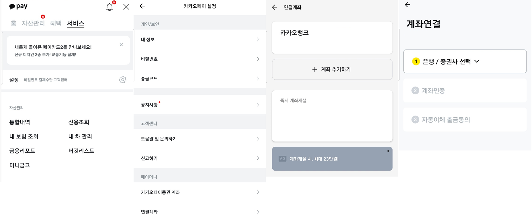 필자는 카톡을 이용하고 있어 카톡으로 설명을 하자면 카카오페이 옵션에서 서비스-설정창으로 이동하면 하단의 연결계좌에서 계좌추가하기를 눌러 연결할 계좌인 SBI저축은행을 선택하고 사이다뱅크로 들어와 계좌번호를 복사한 뒤 다음 3단계의 인증을 거치면 이체한도가 상향되었다는 문자를 받게 될것이다. 변경된 이체한도는 1회 500만원, 1일 1,000만원으로 충분히 불편함없이 사용가능한 금액일 것인데. 사업자의 경우 이마저도 작다고 느껴질 수가 있으니 다음 내용을 참고 하도록 하자.