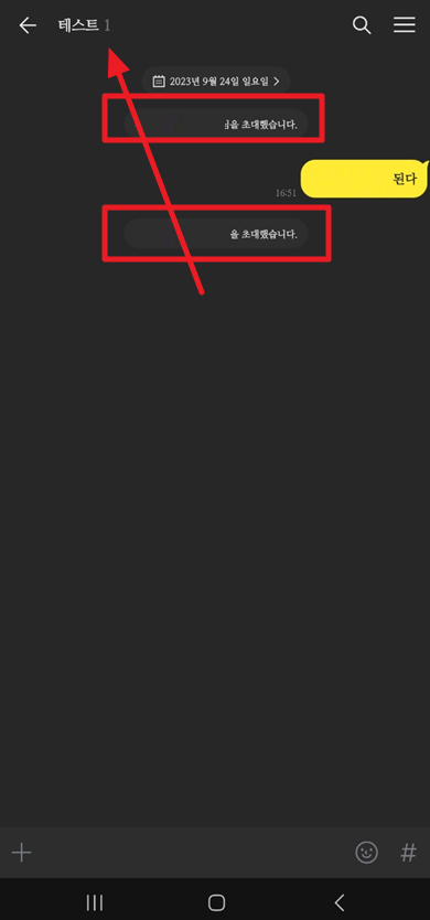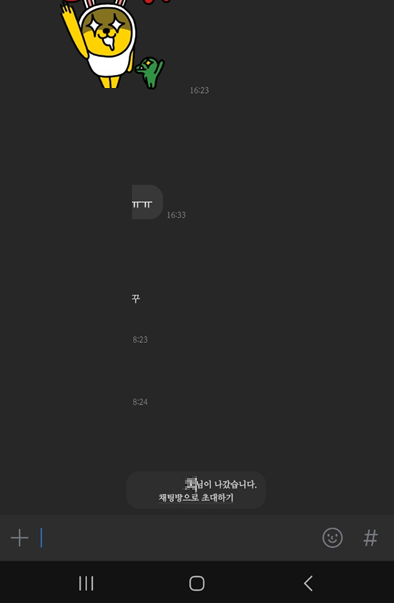 다시 초대를 하고 바로 나간 대화내용의 사진이다.