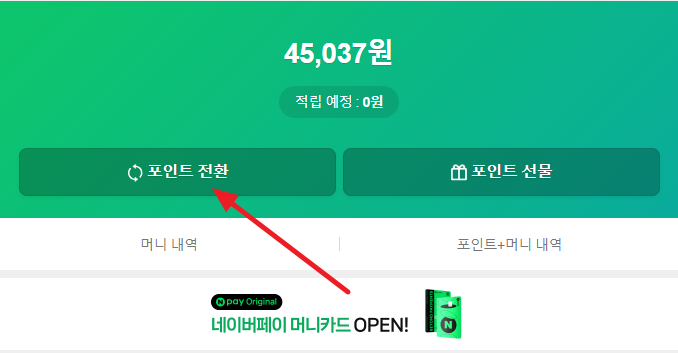 페이 머니는 현금을 입금해서 네이버포인트로 전환한 금액이다.