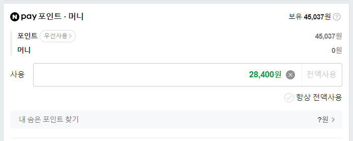 네이버쇼핑을 자주 이용한다면 상품 결제 시 포인트 전액 사용을 통해 포인트를 소진할 수 있다.
