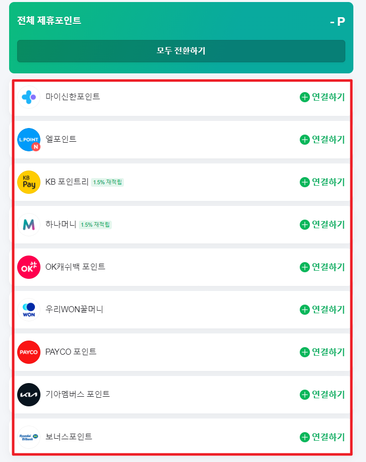 제휴 포인트를 연동시켜줄 수 있는 플랫폼들이다.